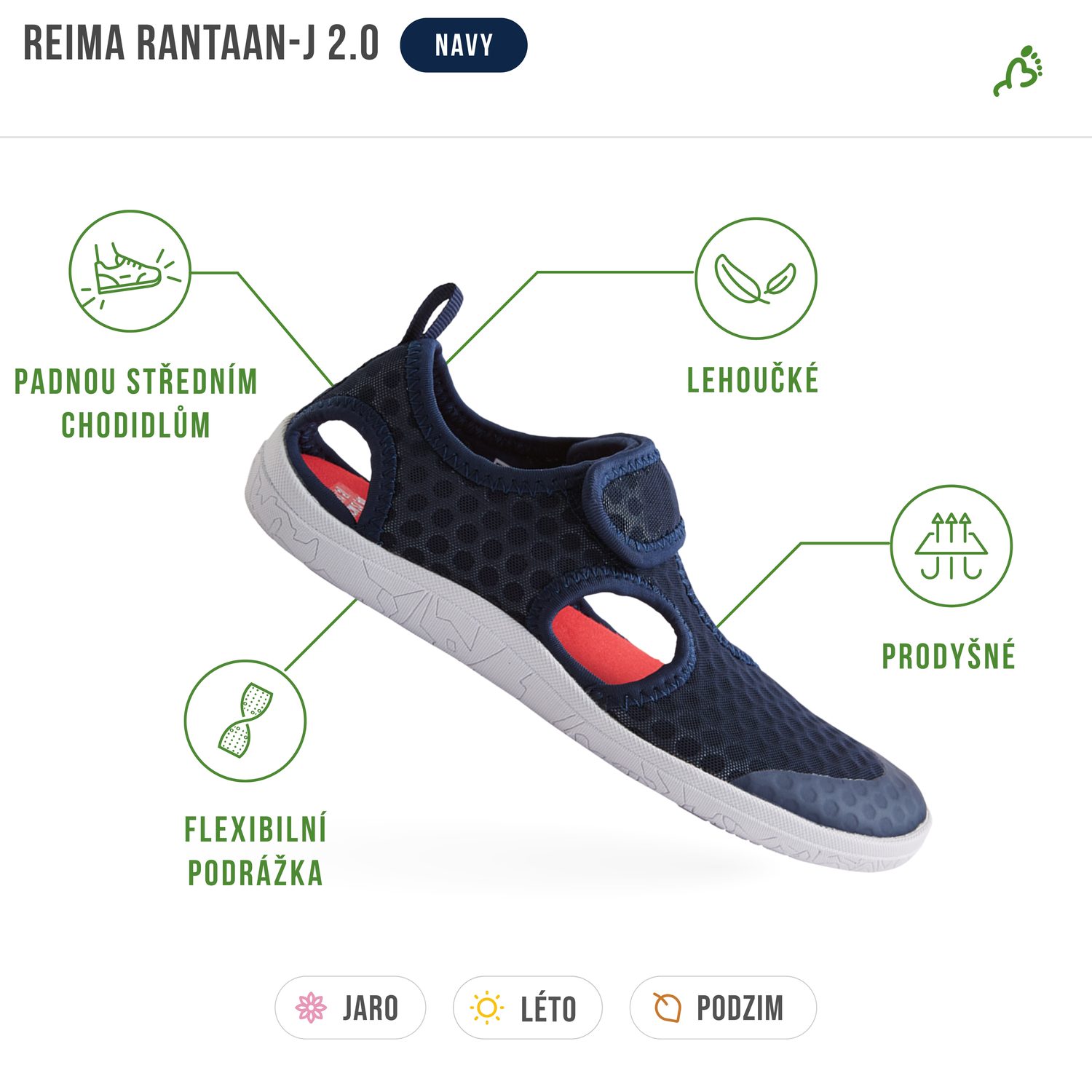 Vyražte k vodě, na výlet nebo na hřiště bez omezení. Sandály Reima Rantaan-J 2.0 poskytují dokonalý komfort, aniž by bránily přirozenému pohybu chodidla. Jsou lehké, flexibilní a maximálně prodyšné, takže nohy zůstanou svěží i během horkých letních dní.
