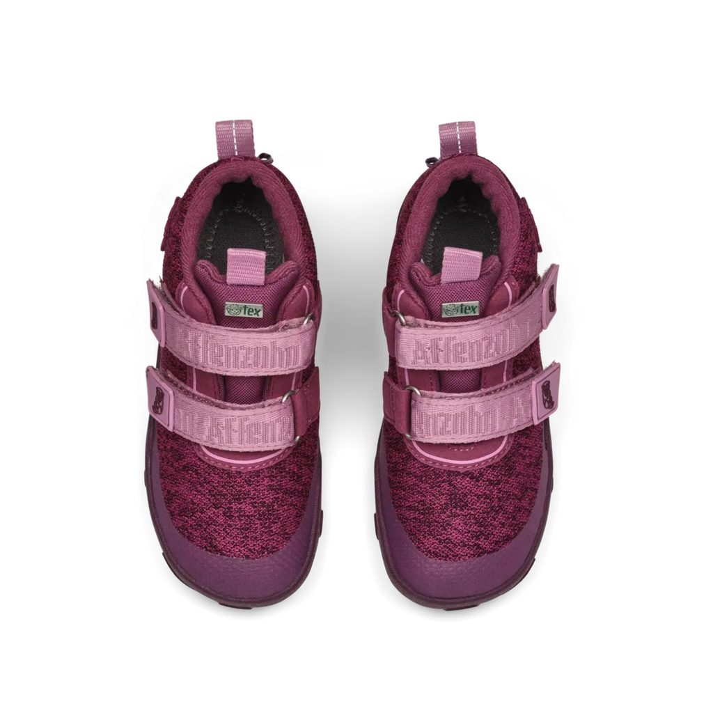 Dětské celoroční barefoot boty ergonomického tvaru z recyklovaného Bluesign polyesteru. Tyto barevné pletené boty jsou díky membráně AffenTex nepromokavé a prodyšné a zajistí tak, že budou dětské nohy stále v suchu a v teple bez ohledu na počasí.