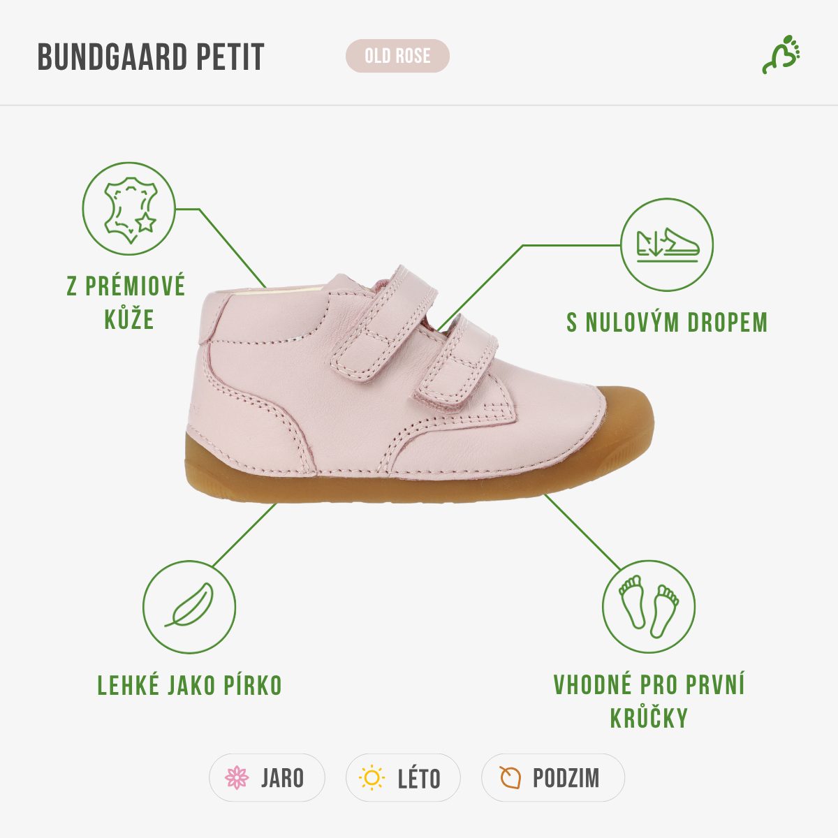 Ikonická dětská barefoot bota BUNDGAARD Petit pro první krůčky – široká špička, pevný opatek a flexibilní podrážka bez dropu pro zdravý vývoj nohou.