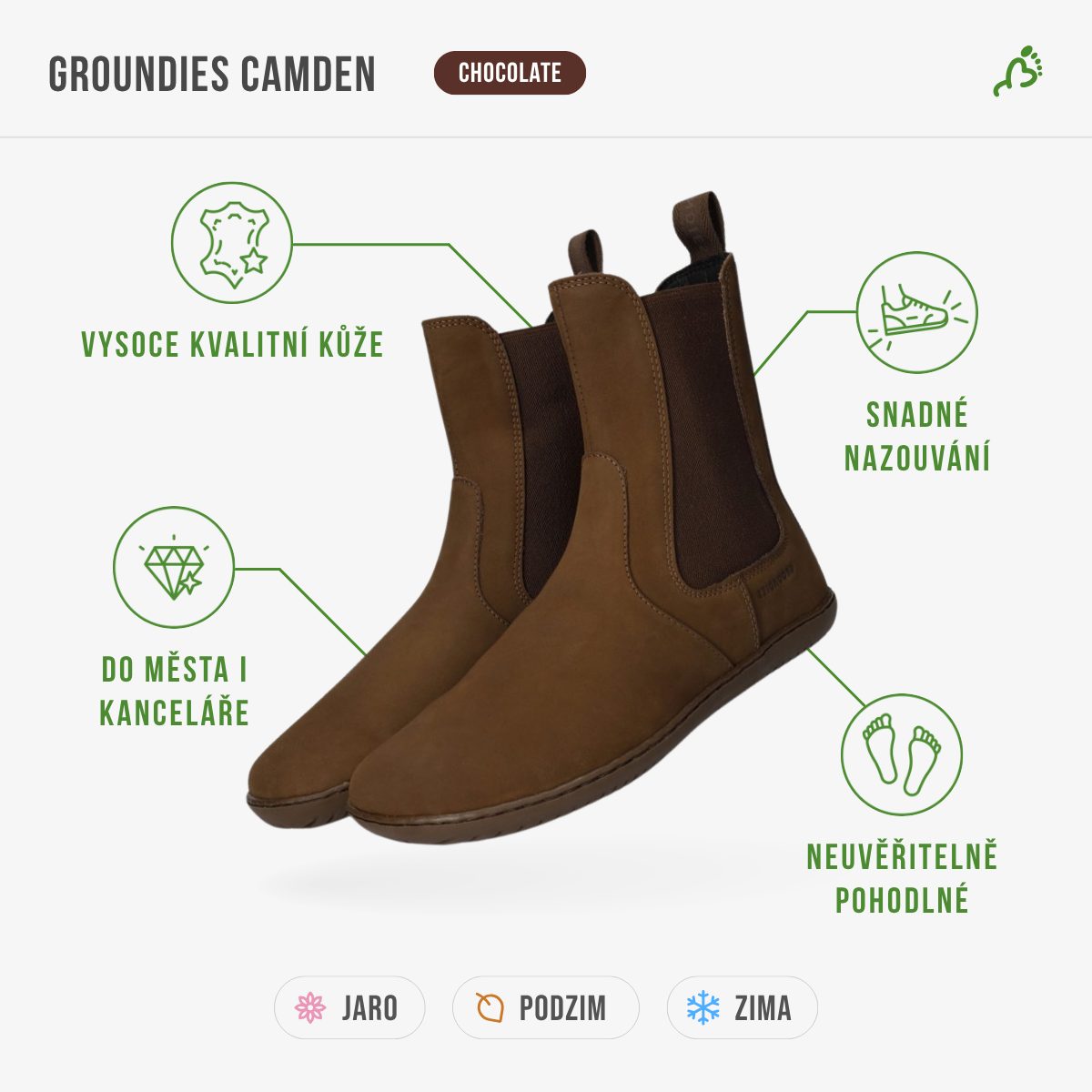 Model Groundies Camden je stylová chelsea bota, která spojuje pohodovou atmosféru londýnského Camdenu s elegantním městským stylem. Ideální volba pro všechny, kteří chtějí vypadat skvěle a zároveň se cítit přirozeně – jako naboso.
