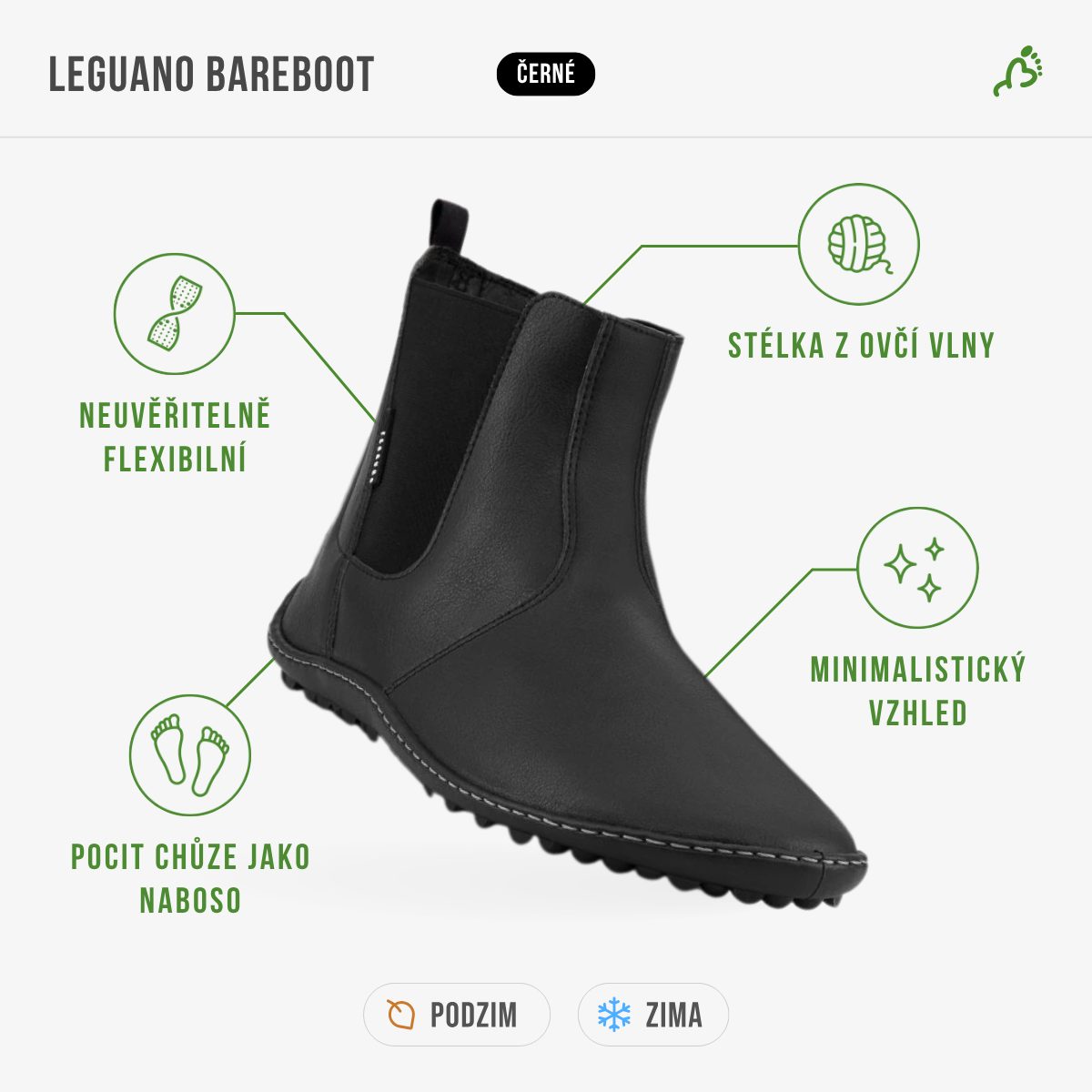 Leguano bareboot jsou novinkou, která spojuje klasický chelsea styl s jedinečným pocitem chůze naboso. Tento model potvrzuje, že barefoot obuv už dávno není jen okrajovou volbou – dnes je symbolem vědomého životního stylu, udržitelnosti a prvotřídního designu.