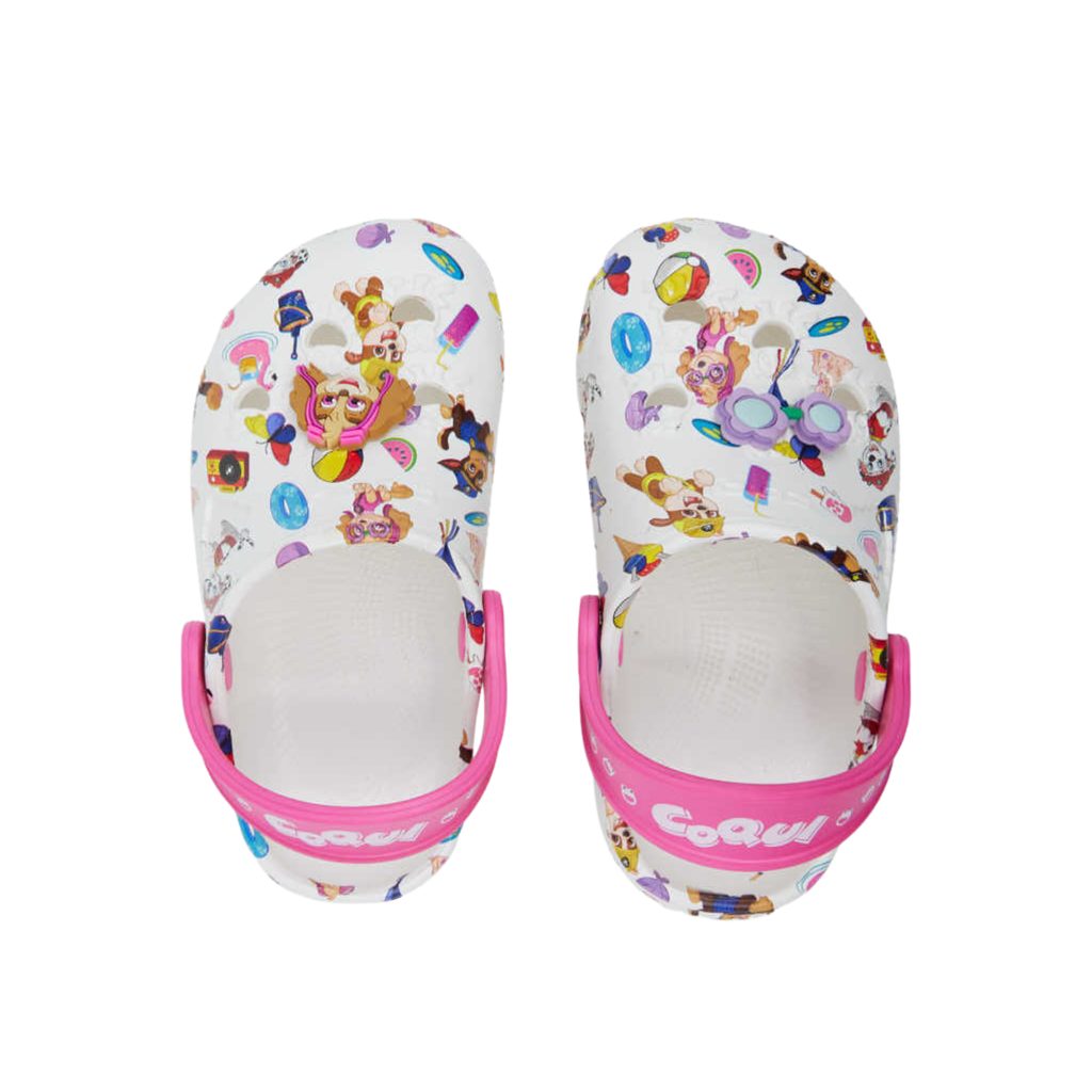 Dětské clogsy Coqui Little Frog jsou pohodlné a ultralehké pantoflíčky s motivem Tlapkové patroly. Jsou navrženy s elastickým patním páskem, který perfektně sedí a zajišťuje stabilitu při každém kroku. Jsou vyrobeny z materiálu Coqui Air, který využívá funkci uzavřených pryskyřičných buněk. Tento materiál se vyznačuje nízkou hmotností a velmi snadnou údržbou.