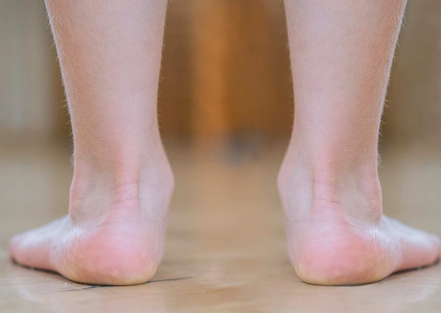 Ukázka valgózních kotníků. Vnitřní kotníky padají dovnitř. Patní kost nestojí vertikálně a Achilovky jsou do obloučků.