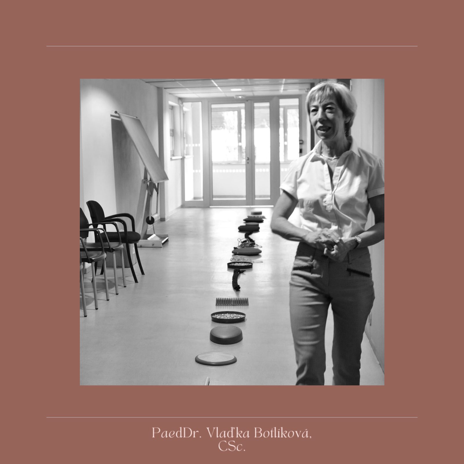 | Vysokoškolská učitelka a lektorka zdravotního cvičení pro soukromé firmy i státní organizace. Již 30 let předává lidem umění sebeléčby pohybem. Posledních deset let se soustřeďuje na problematiku nohou a učí své klienty, jak se zbavit bolestí a opět si užívat zdravé tělo a lehký krok. |