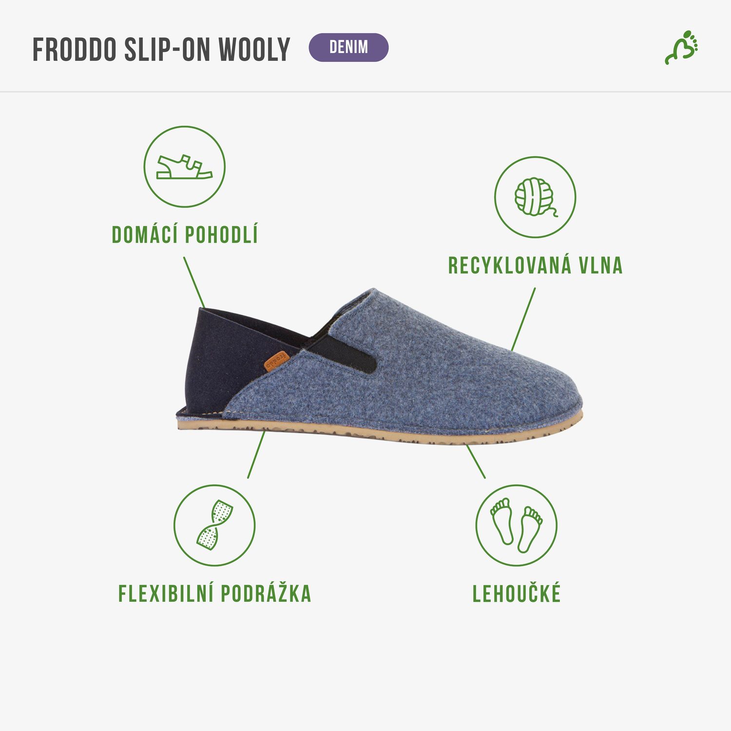 FRODDO SLIP-ON WOOLY Denim | Barefoot přezůvky