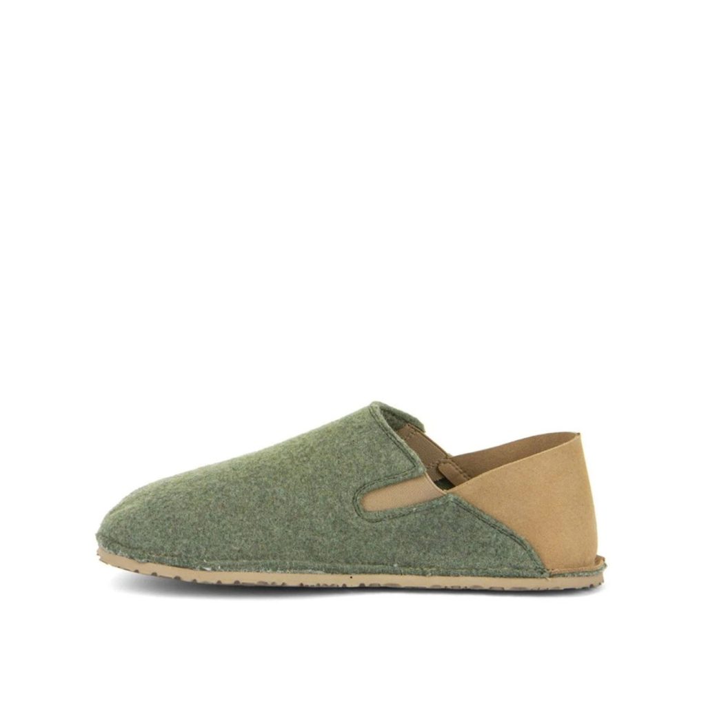 Stylové barefoot přezůvky od chorvatské značky Froddo vyrobené z 50% recyklované vlny. Lze je nosit jako klasické bačkory nebo sešlápnout tenkou patu a nazout je jako pantofle, které perfektně drží na noze. Patní část je z velmi tenkého materiálu a není při sešlápnutí prakticky cítit. Pro lepší nazouvání jsou na nártu pružné gumičky.