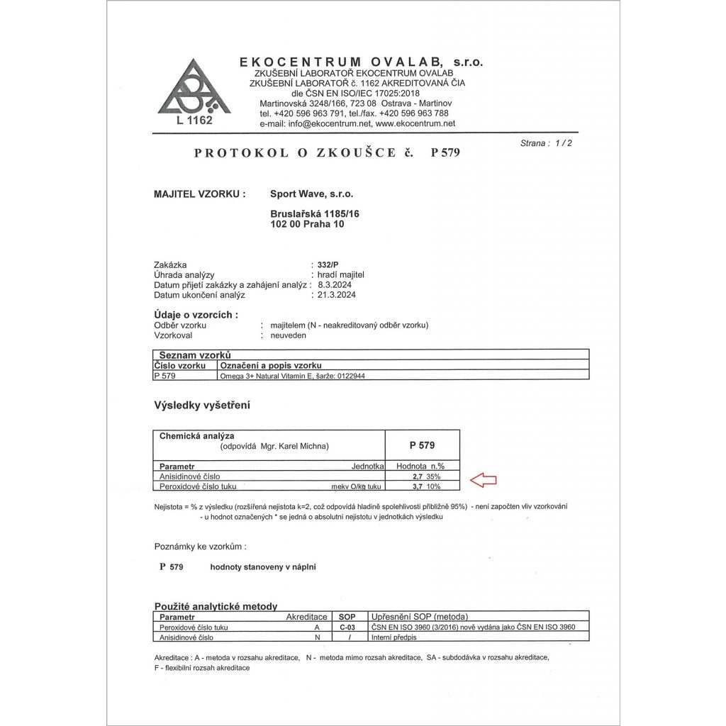Denní dávka poskytuje vysoký obsah omega-3 mastných kyselin, zejména: