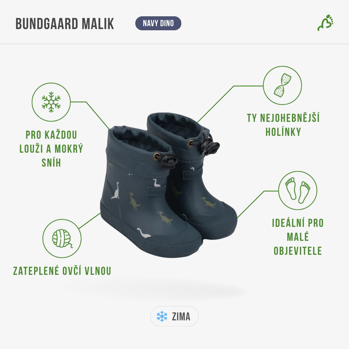 Malik je zimní verzí oblíbeného modelu Cover, navrženou speciálně pro nejmenší děti, které podnikají své první krůčky. Botička je vyrobena z měkké přírodní gumy a uvnitř zateplená hřejivým kožíškem a vlněnou stélkou pro lepší tepelný komfort.