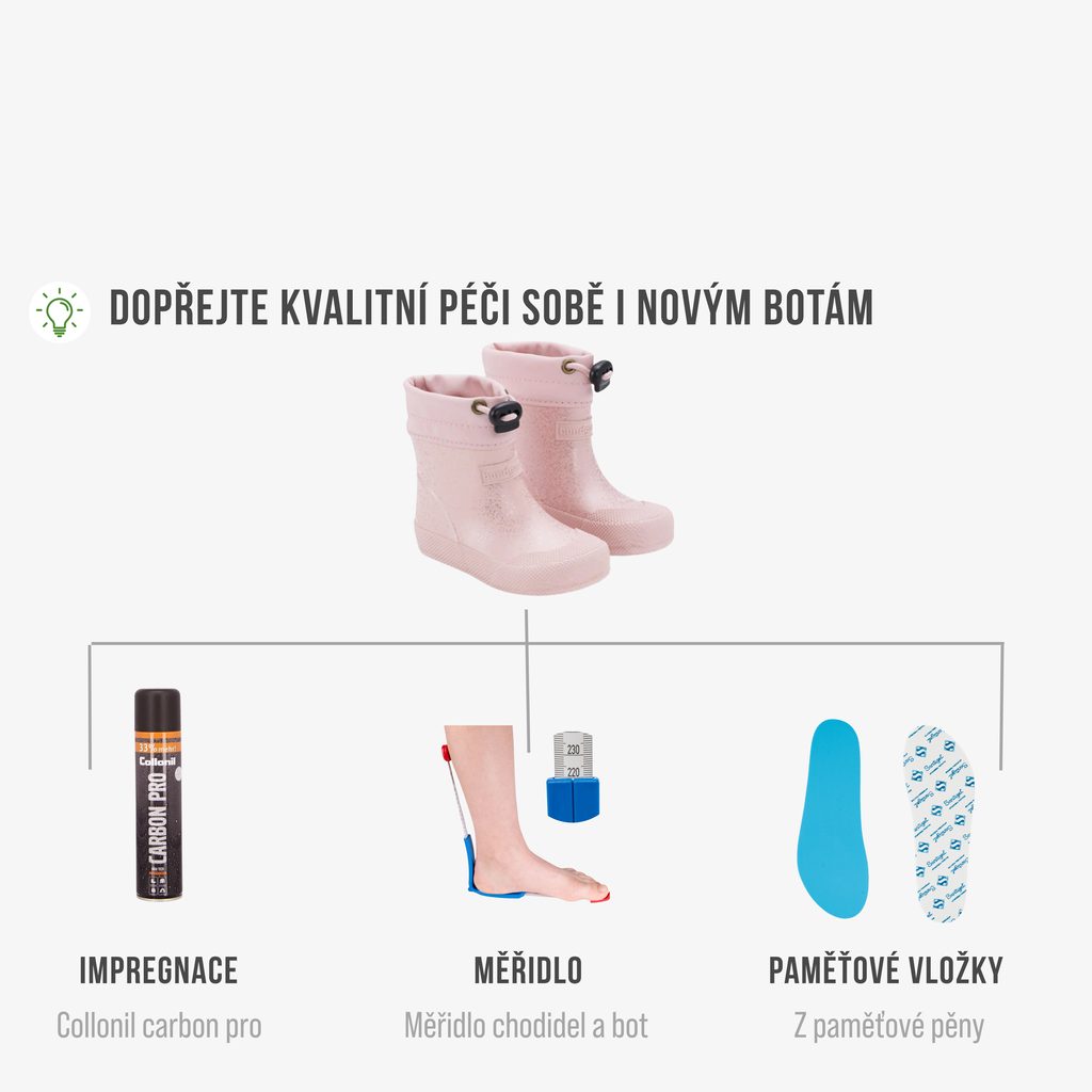 Změřte velikost nohy. Aby holínka z nohy nesjížděla, doporučujeme v tomto případě nadměrek maximálně 1 cm (u menších dětí klidně i o kousek méně).