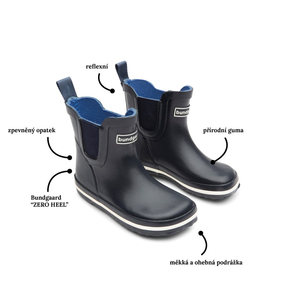 Holinky značky Bundgaard v nižší výšce. Mají velkorysý prostor pro prsty a tvar který bude vyhovovat i dominantním palcům. Boty jsou pečlivě zateplené a zároveň jako klasické gumáky – jednoduše nazouvací, pohodlné a volné i okolo kotníku. Vhodné na chladné upršené dny, kdy byste nejradši zalezli zpátky do postele, ale vaše ratolest chce jít ven a skákat do kaluží.