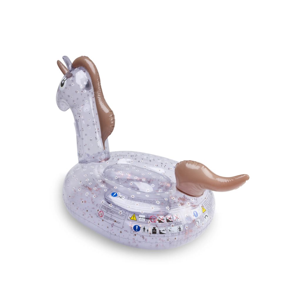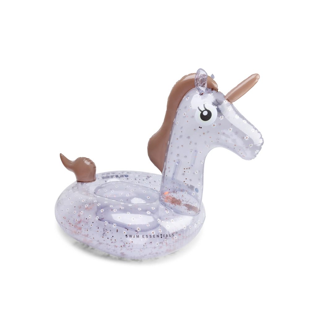 Obrovský průhledný nafukovací jednorožec s třpytivými sedmikráskami od Swim Essentials vynikne krásně v bazénu i na moři. Je určen pro děti od 6 let, maximální nosnost je 80 kg, takže teenageři a dospělí jej mohou snadno použít pro zábavu a lenošení. Slouží jako multifunkční doplněk vody.