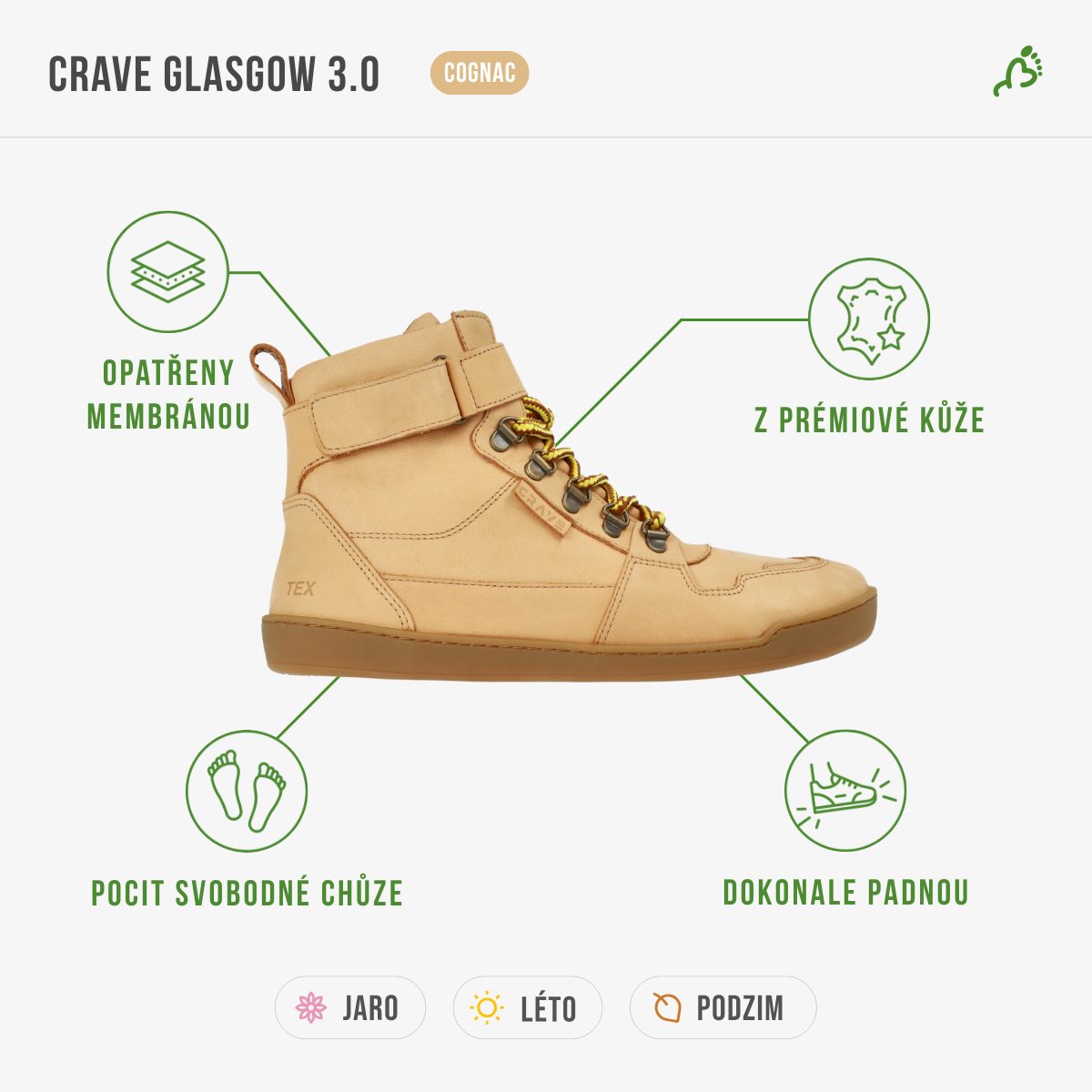 CRAVE Glasgow 3.0 – hledáte městské boty do nepohody, za kterými se budou kolemjdoucí obdivně otáčet? Nechte se hýčkat měkkou prémiovou kůží s membránou a užijte si dokonale pohodlnou barefoot chůzi.