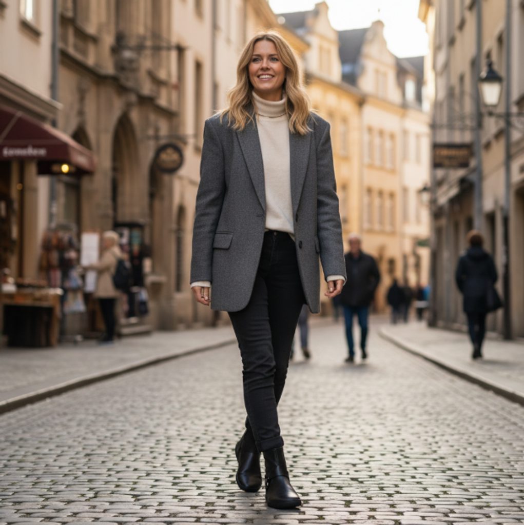 Ideální pro odvážné business-casual outfity nebo moderní kombinace, které si hrají s kontrastem elegance a výraznosti. Skvěle sedí k úzkým kalhotám, midi-sukním i oversized sakům – pro sebevědomý městský vzhled.