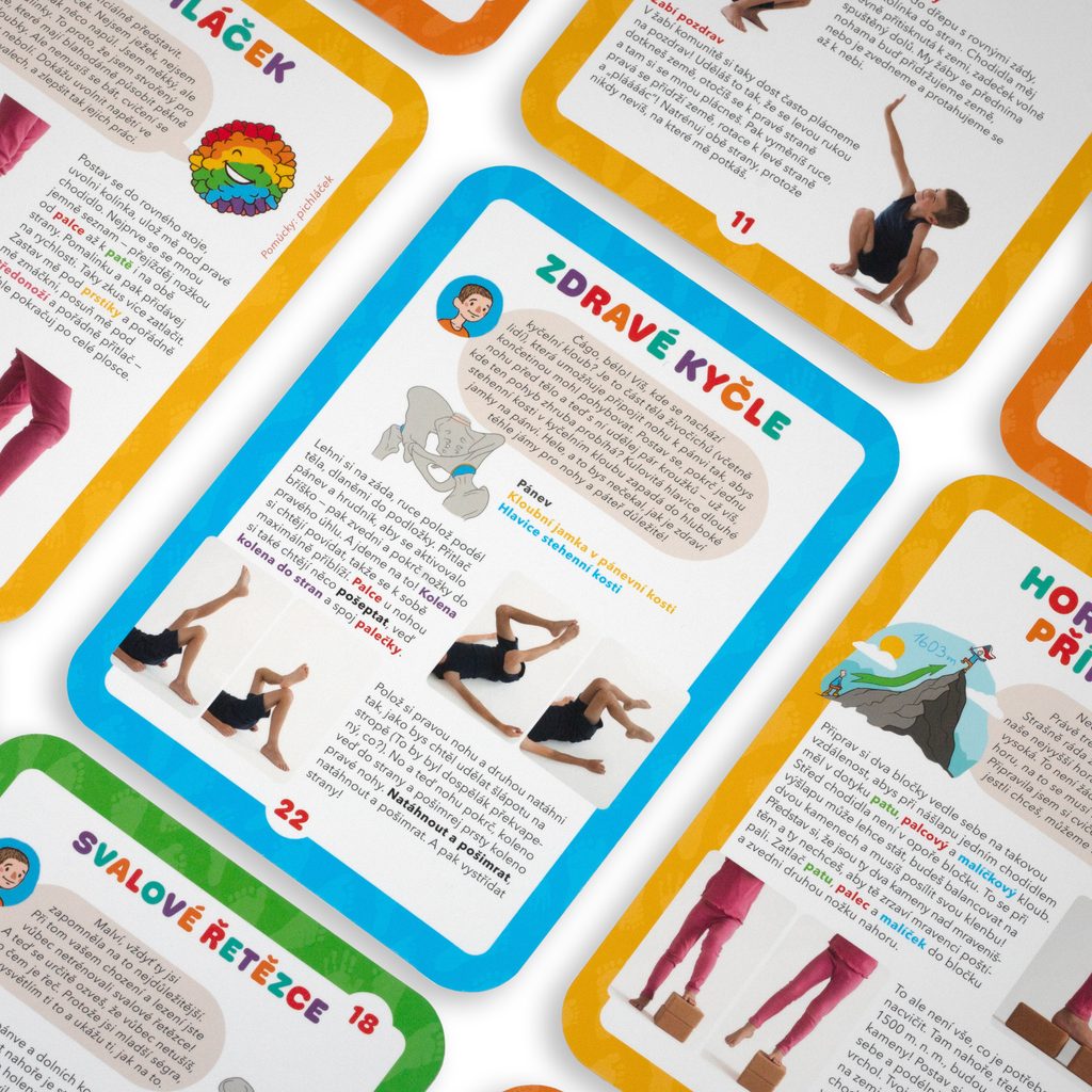 100 efektivních cviků na ploché nohy, vbočené palce, valgózní kotníky, překlopenou pánev a další časté potíže předškolních a školních dětí. Unikátní cvičební karty pro každé dítě! 30 edukačních a cvičebních karet pro silné, stabilní, pružné a vnímavé nohy + navíc duhové nálepky. Zábavnou formou odkryjete všechna tajemství zdravých nohou!