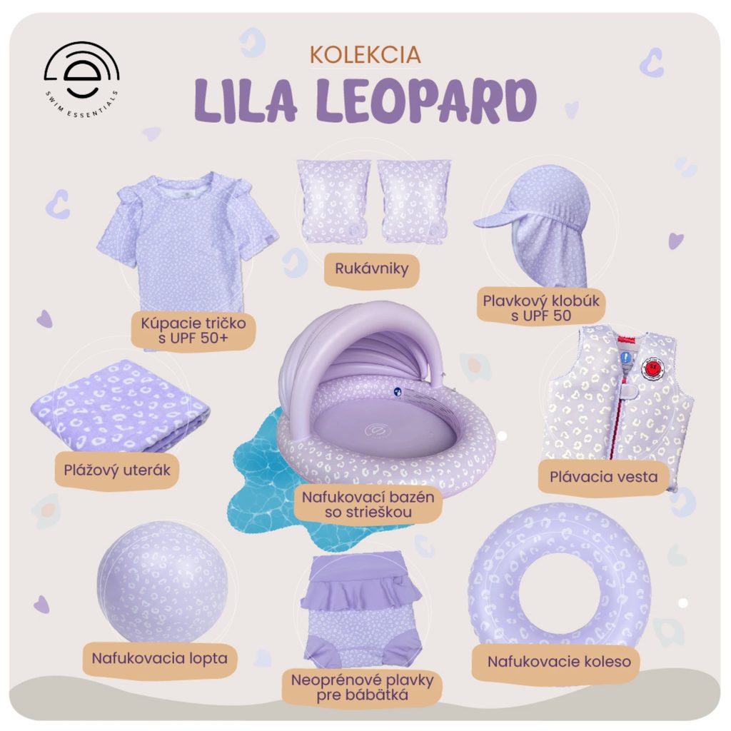 NAFUKOVACÍ SRDCE Leopard Lila 150 cm KLOBOUČEK S OCHRANOU KRKU UPF 50 + Leopard lila