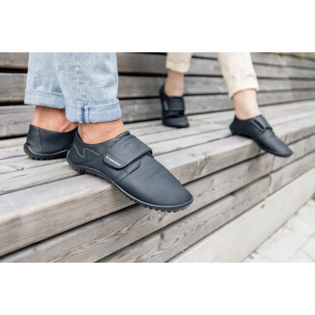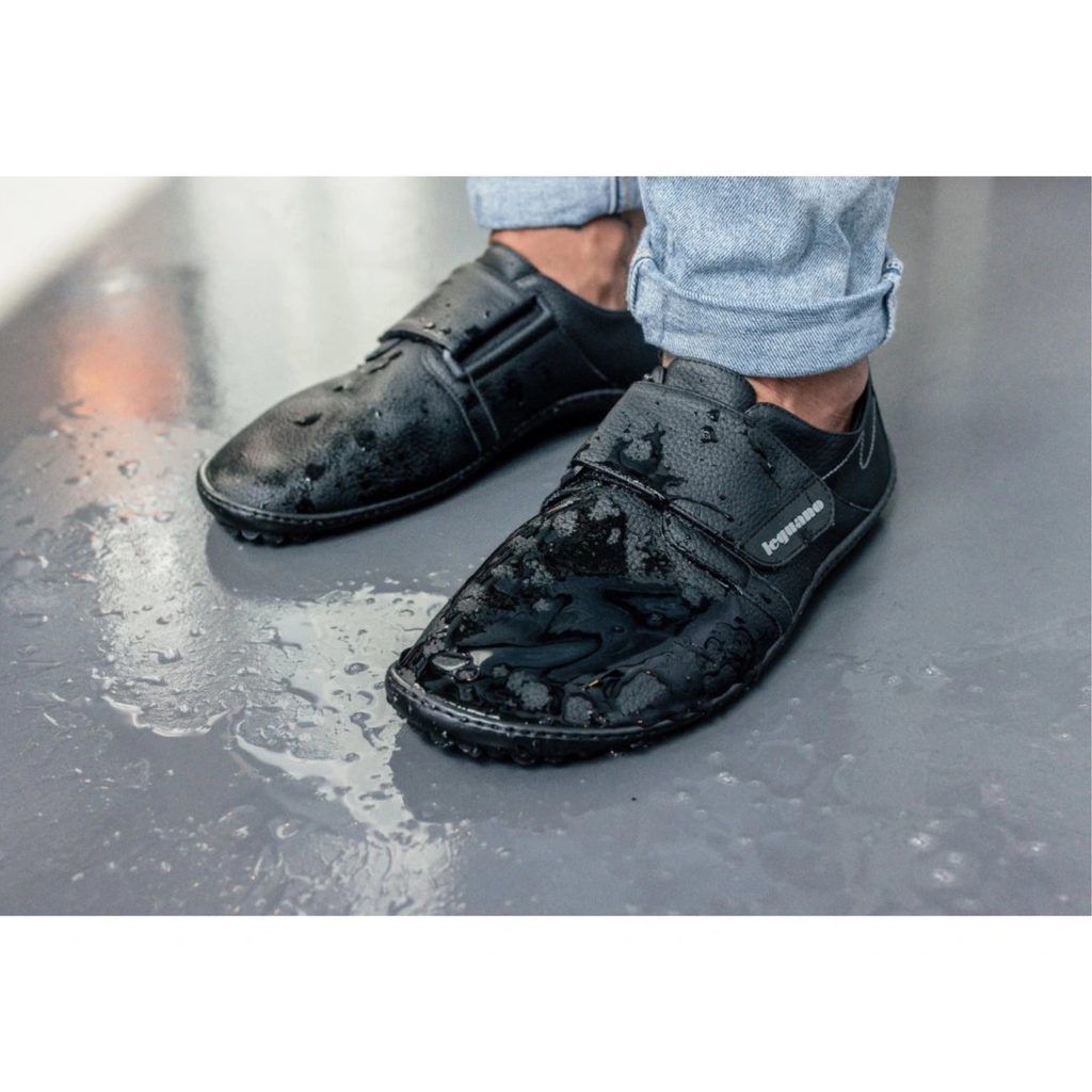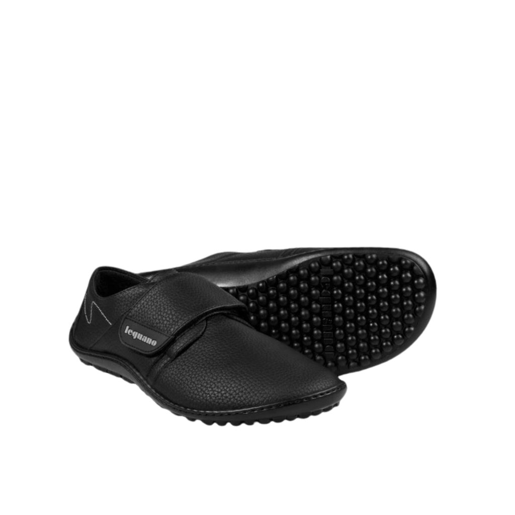Barefoot leguano neron vychází ze staršího modelu care. Tyto boty mají velkou a flexibilně nastavitelnou sponu, díky níž se snadno nazouvají a zouvají a také působí jedinečným stylem. Samozřejmostí jsou i další legendární vlastnosti leguano: výrazný pocit bosé chůze, díky vysoké míře pružnosti všech použitých ručně šitých materiálů, které nekladou noze a jejímu zdravému pohybu žádný odpor. Navíc materiál účinně odpuzuje vodu, snadno se otírá a čistí. Protiskluzová podrážka zajišťuje bezpečný pohyb.