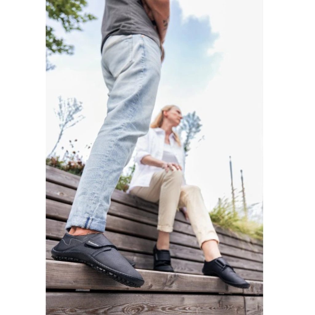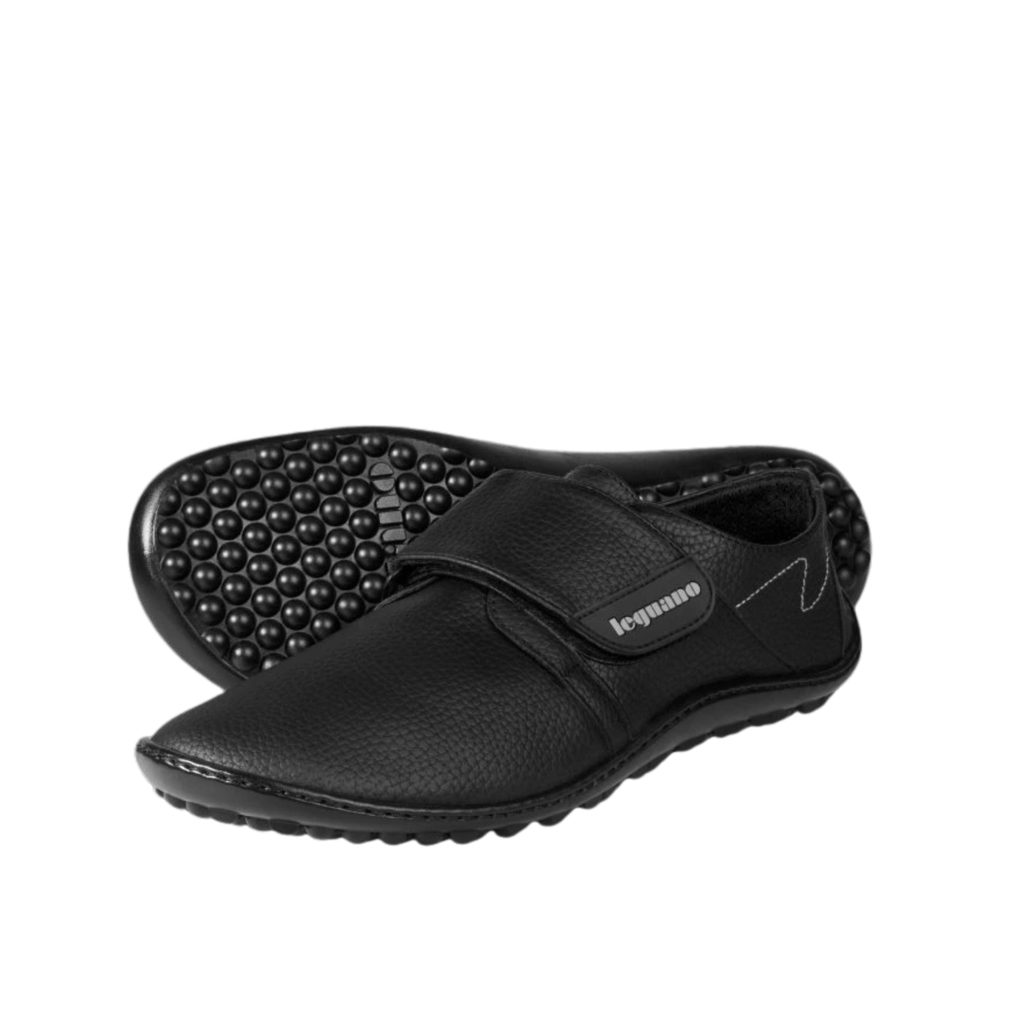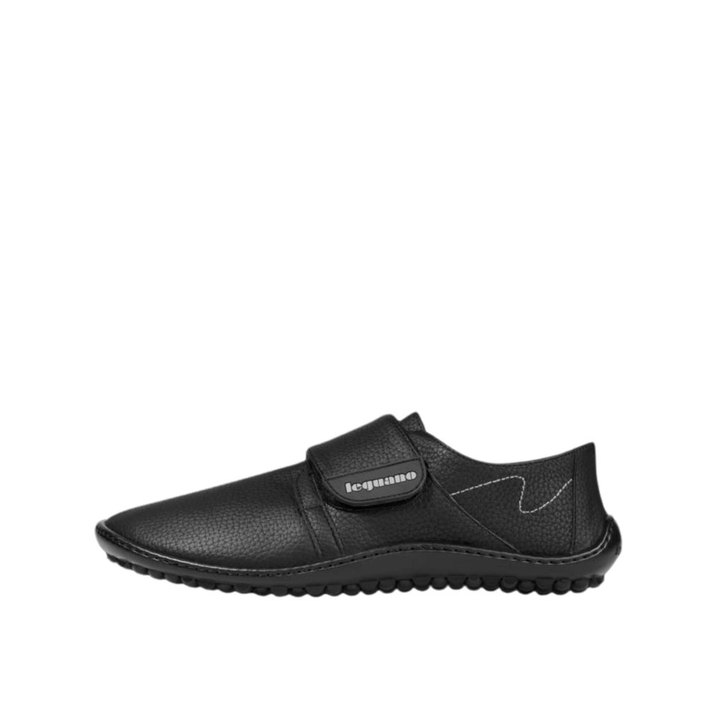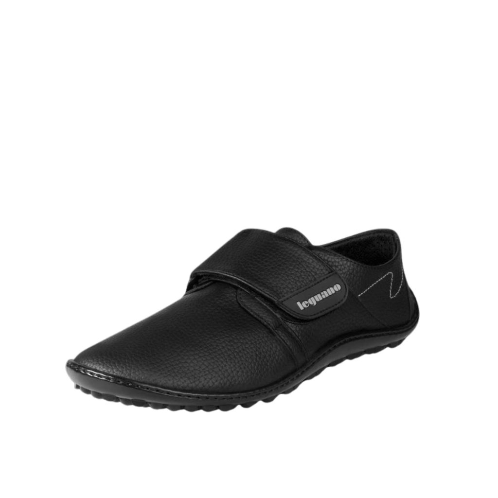 Barefoot leguano neron vychází ze staršího modelu care. Tyto boty mají velkou a flexibilně nastavitelnou sponu, díky níž se snadno nazouvají a zouvají a také působí jedinečným stylem. Samozřejmostí jsou i další legendární vlastnosti leguano: výrazný pocit bosé chůze, díky vysoké míře pružnosti všech použitých ručně šitých materiálů, které nekladou noze a jejímu zdravému pohybu žádný odpor. Navíc materiál účinně odpuzuje vodu, snadno se otírá a čistí. Protiskluzová podrážka zajišťuje bezpečný pohyb.