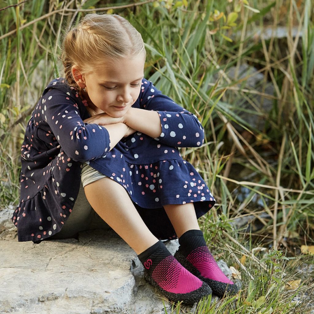 Skinners pro děti jsou unikátní ponožkoboty, které kombinují ochranné prvky obuvi s komfortem a svobodou ponožek. Podporují tak přirozený vývoj dětských nohou bez zbytečných omezení tvrdé a neforemné obuvi.