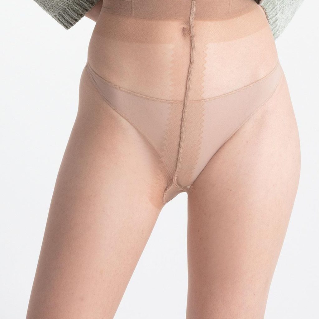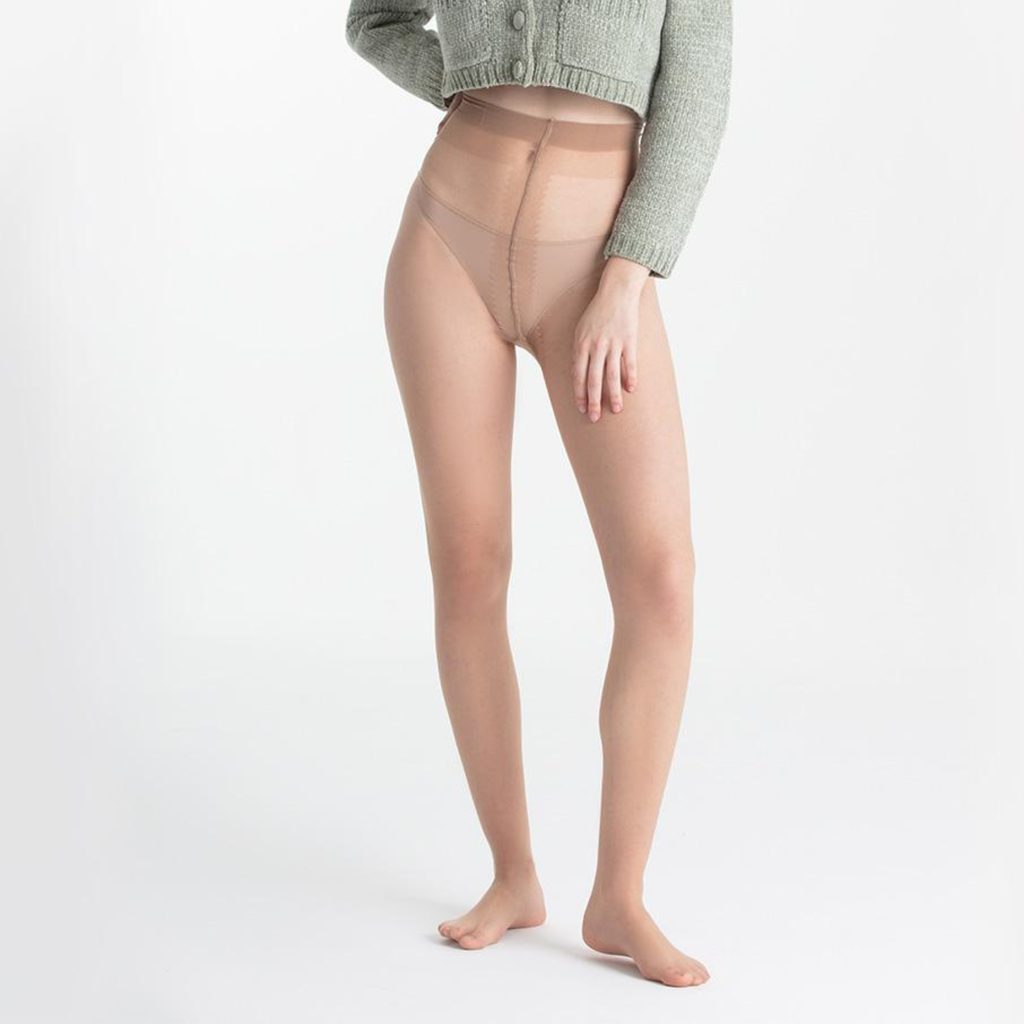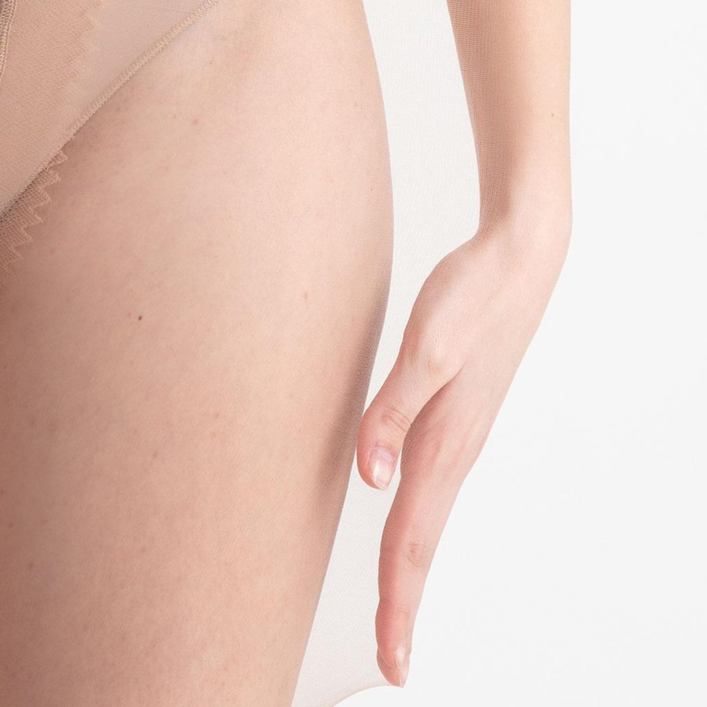 • Zesílená část kolem švů v kalhotkové části: Diskrétně zesílený prostřední šev ve stylu T-band zajišťuje funkčnost a podporu, aniž by narušoval jemnost a lehkost silonek.
