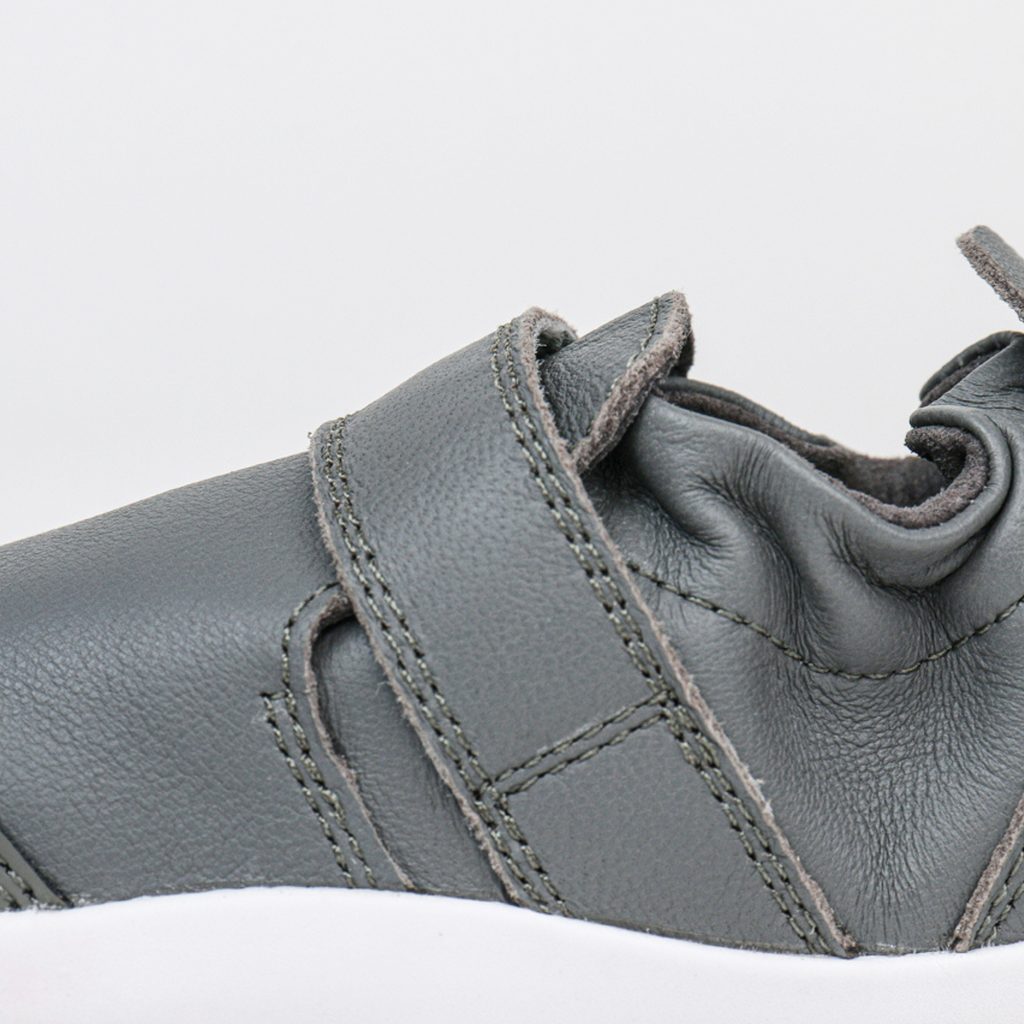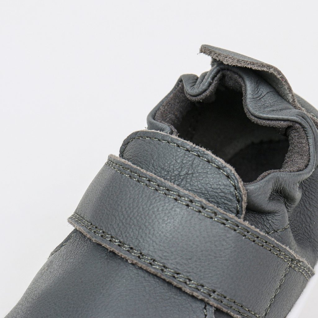 Kožené tenisky jsou vyrobené z prémiové, měkké kůže a flexibilní gumové 3mm podrážky. Díky zapínání na suchý zip a zřasení kolem kotníku dobře sedí, snadno se nasazují i sundávají. Vhodné na chození i lezení - ideální boty pro malé průzkumníky, kteří podnikají své první krůčky.