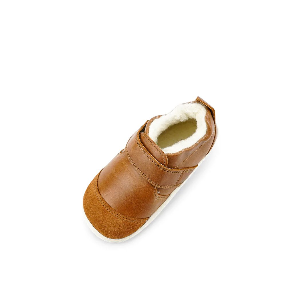 Tyto nízké kožené zimní boty zateplené merino vlnou vás na první pohled zaujmou minimalistickým designem. Jsou lehké a velice flexibilní, tudíž se hodí pro první krůčky. Díky nařasení okolo kotníku a zapínání na suchý zip skvěle padnou.