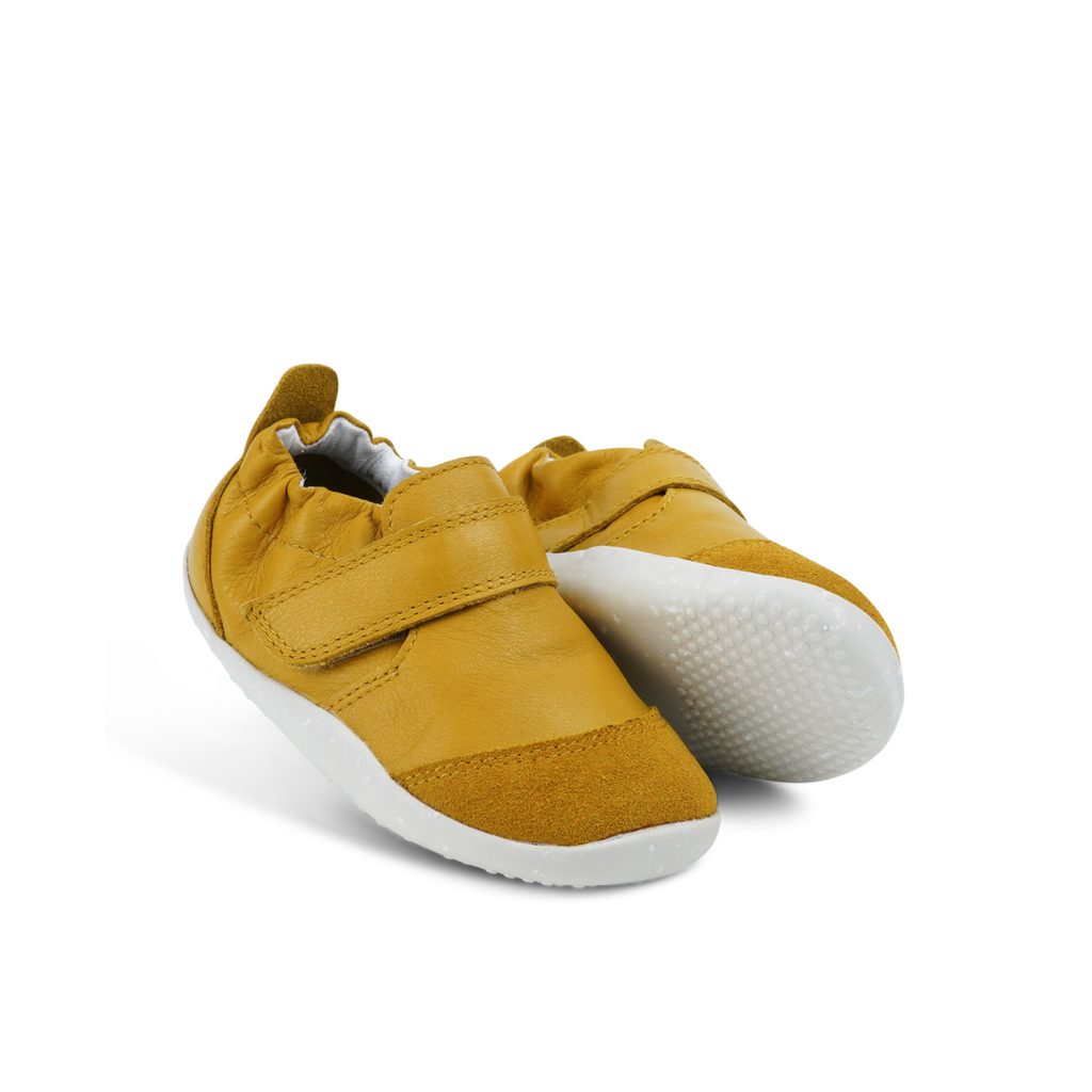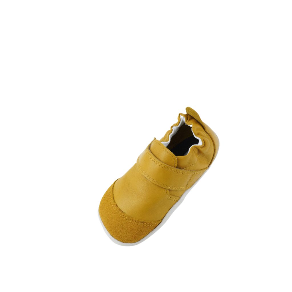 Kožené tenisky jsou vyrobené z prémiové, měkké kůže a flexibilní gumové 3mm podrážky. Díky zapínání na suchý zip a zřasení kolem kotníku dobře sedí, snadno se nasazují i sundávají. Semišem vyztužená přední část chrání nárt před protržením. Vhodné na chození i lezení - ideální boty pro malé průzkumníky, kteří podnikají své první krůčky.