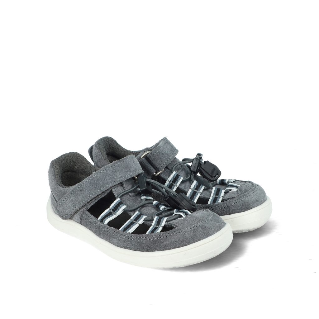 Dětské barefoot sandály slovenské značky Baby Bare Shoes ve sportovním stylu. Jsou lehké a flexibilní, s 3mm patentovanou podrážkou, která chrání dětské chodidlo, ale zároveň mu umožní vnímat nerovnosti terénu. Díky zapínání na suchý zip a gumičku jdou boty snadno obouvat, dobře drží na noze a široká špička poskytuje dostatek prostoru pro dětské prstíky. Prostě ideální bota na letní procházky a dovádění.