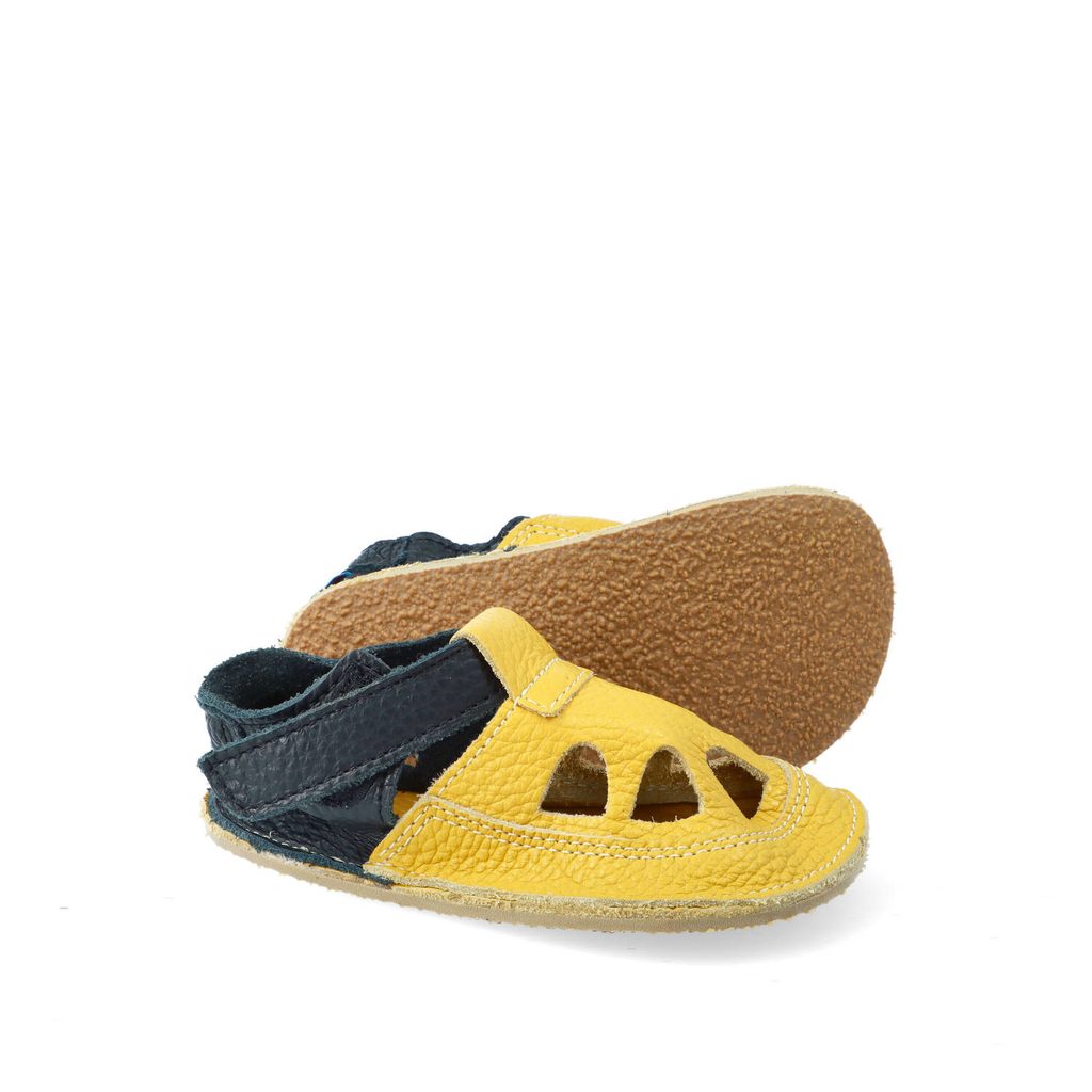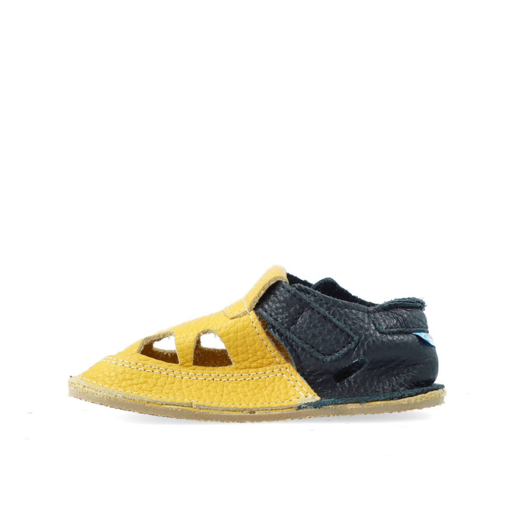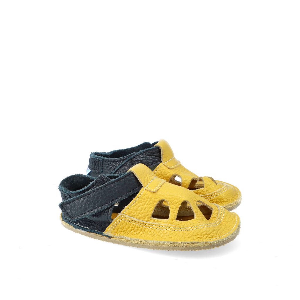 Dětské barefoot sandály slovenské značky Baby Bare Shoes jsou vyrobeny z měkké kůže, která se velmi dobře přizpůsobí dětským chodidlům a dopřeje tak vysoký cit pro všechny nerovnosti v terénu. Mají zvětšenou perforaci v přední i zadní části botky pro ještě větší prodyšnost v letních dnech. Dovolují nožičce přirozeně se hýbat a tím posilovat všechny svaly podílející se na stoji a chůzi. Botičky je možné nosit naboso bez ponožky i s ponožkou. Lze je používat i jako bačkůrky do interiéru. Jsou vhodné pro začínající i zkušenější chodce.