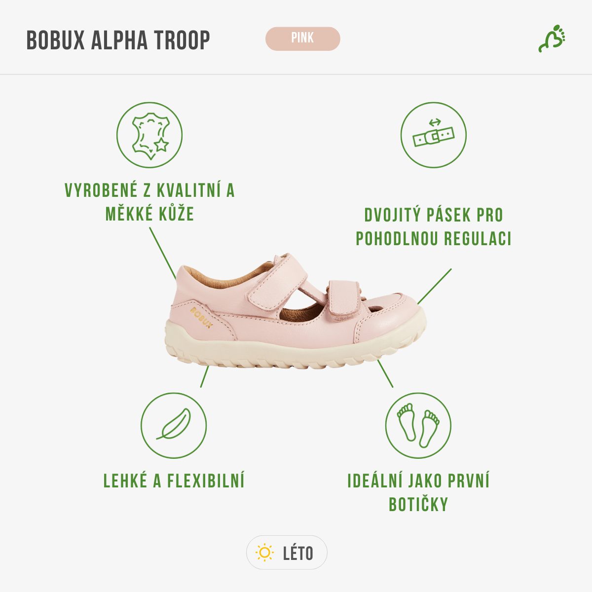 Celokožené barefoot sandálky ve sportovním stylu jsou odolné, pohodlné a ideální pro aktivní děti. Jsou vyrobené z prémiové měkké kůže a dvojitý nastavitelný pásek usnadní nazouvání i sundávání.