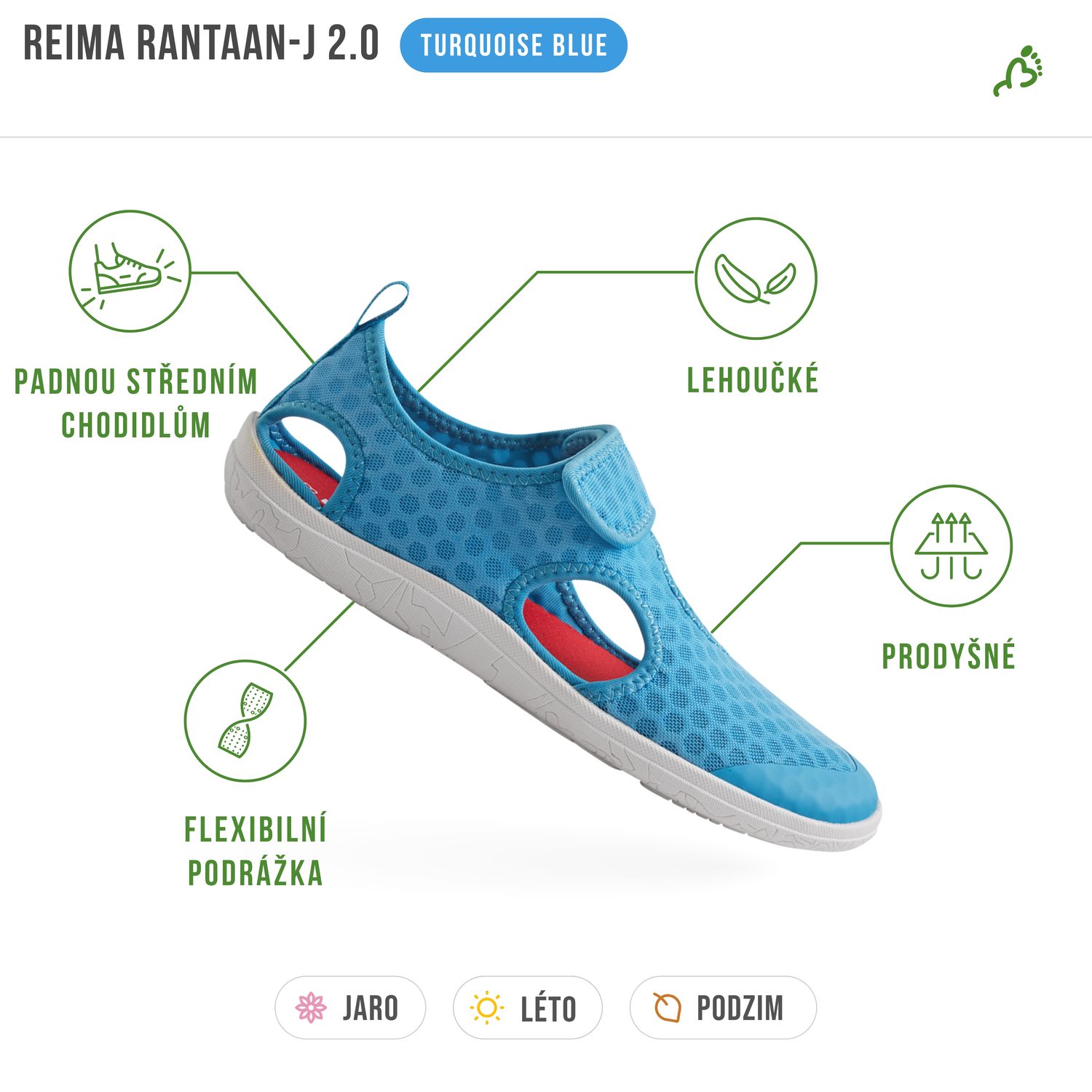 Vyražte k vodě, na výlet nebo na hřiště bez omezení. Sandály Reima Rantaan-J 2.0 poskytují dokonalý komfort, aniž by bránily přirozenému pohybu chodidla. Jsou lehké, flexibilní a maximálně prodyšné, takže nohy zůstanou svěží i během horkých letních dní.