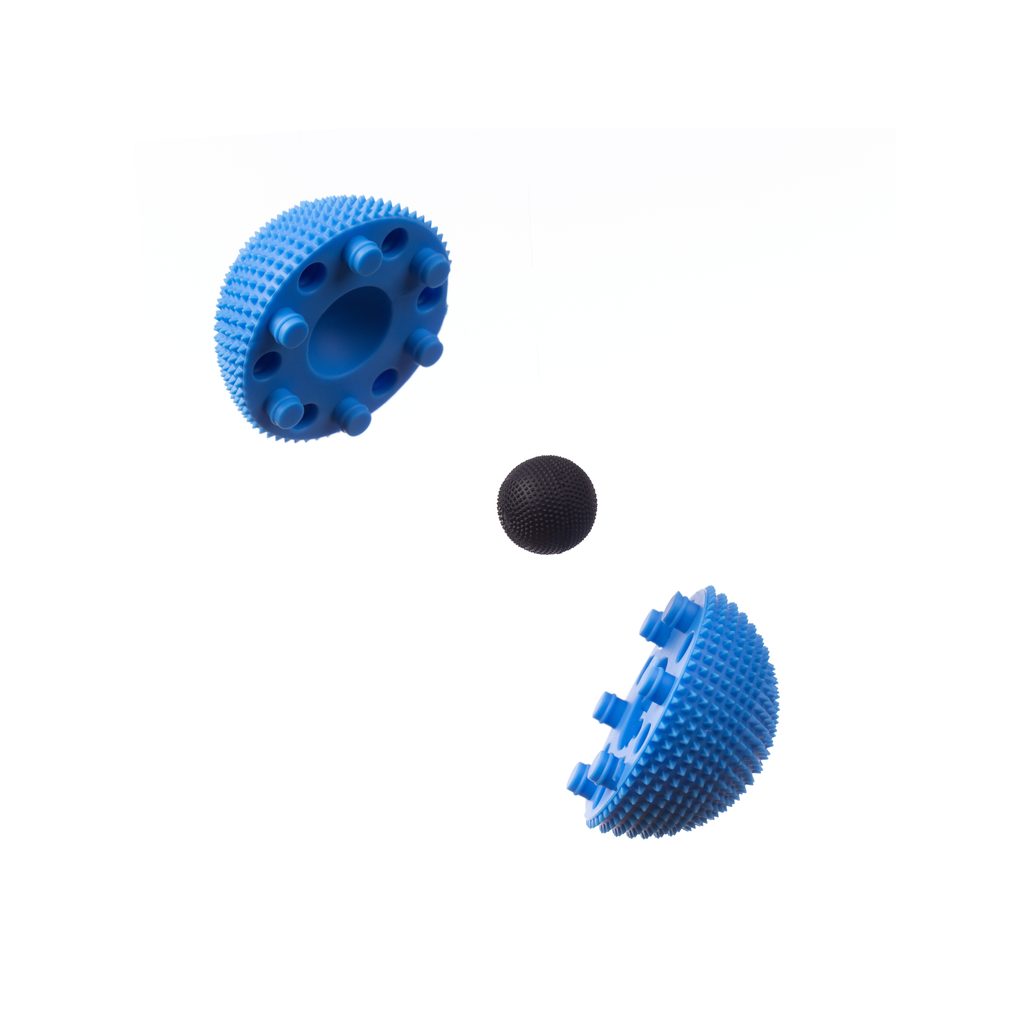 Masážní a uvolňovací pomůcka 3 v 1. Můžete jej použít jako masážní míček, nebo ho rozdělit do dvou kopulí a jemně s nimi uvolňovat konkrétní body, třeba i při sezení v kanceláři. Sofistikované jehličky a pružnost míčku poskytují jak senzorickou stimulaci, tak uvolnění ztuhlých částí chodidel. Uvnitř míčku je pevný Micro Round pro detailní práci a pronikání do malých svalů nohou a rukou.