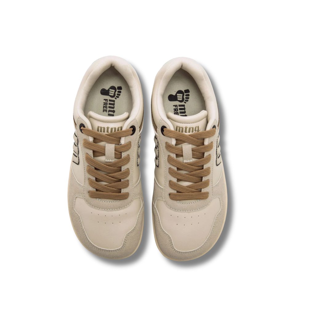 Objevte boty, které spojují přirozený komfort barefoot obuvi a moderní design značky Mustang. Veganské tenisky v retro designu se semišovými prvky na bocích, patě a špičce v jemným béžových tónech poskytují svěží a moderní nádech. Krémově zbarvená podrážka poskytuje jemný kontrast.
