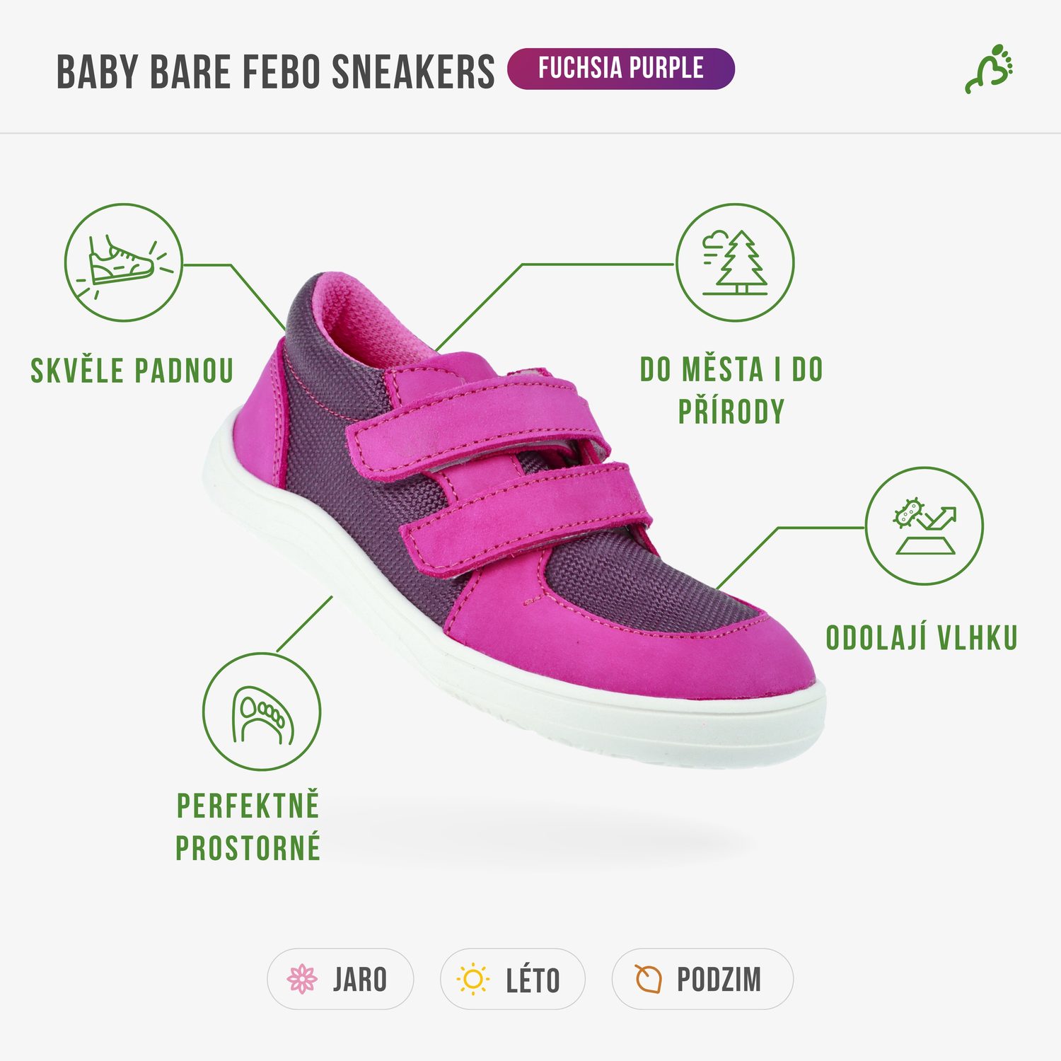 Febo Sneakers jsou vhodné pro začínající i zkušené chodce, kteří už stabilně chodí. Ideální pro děti s normálním až širším chodidlem, i s dominantním palcem díky anatomicky tvarované špičce.