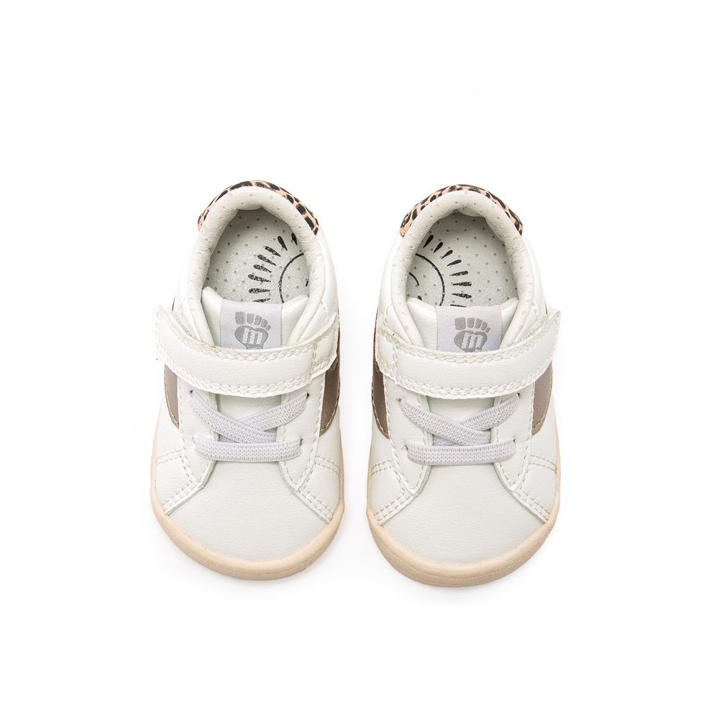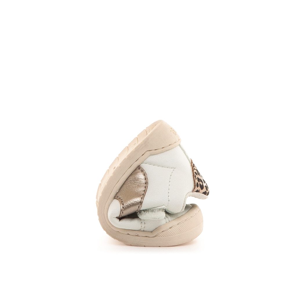 Model byl vyvinut ve spolupráci s dětským traumatologem, aby respektoval přirozenou biomechaniku chodidla. Prostorná špička umožňuje volný pohyb prstů, zatímco tenká 3 mm podrážka bez dropu podporuje rovnováhu a přirozený kontakt se zemí. Suchý zip a elastické tkaničky umožňují snadné obouvání i perfektní přizpůsobení noze.