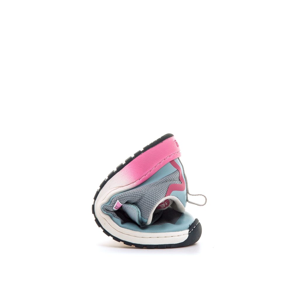 Model byl vyvinut ve spolupráci s dětským traumatologem, aby respektoval anatomii dětské nohy. Prostorná špička umožňuje volný pohyb prstů, zatímco flexibilní a zcela plochá podrážka podporuje stabilitu, rovnováhu a přirozený styl chůze. Elastické tkaničky a suchý zip usnadňují obouvání a umožňují perfektní přizpůsobení noze.
