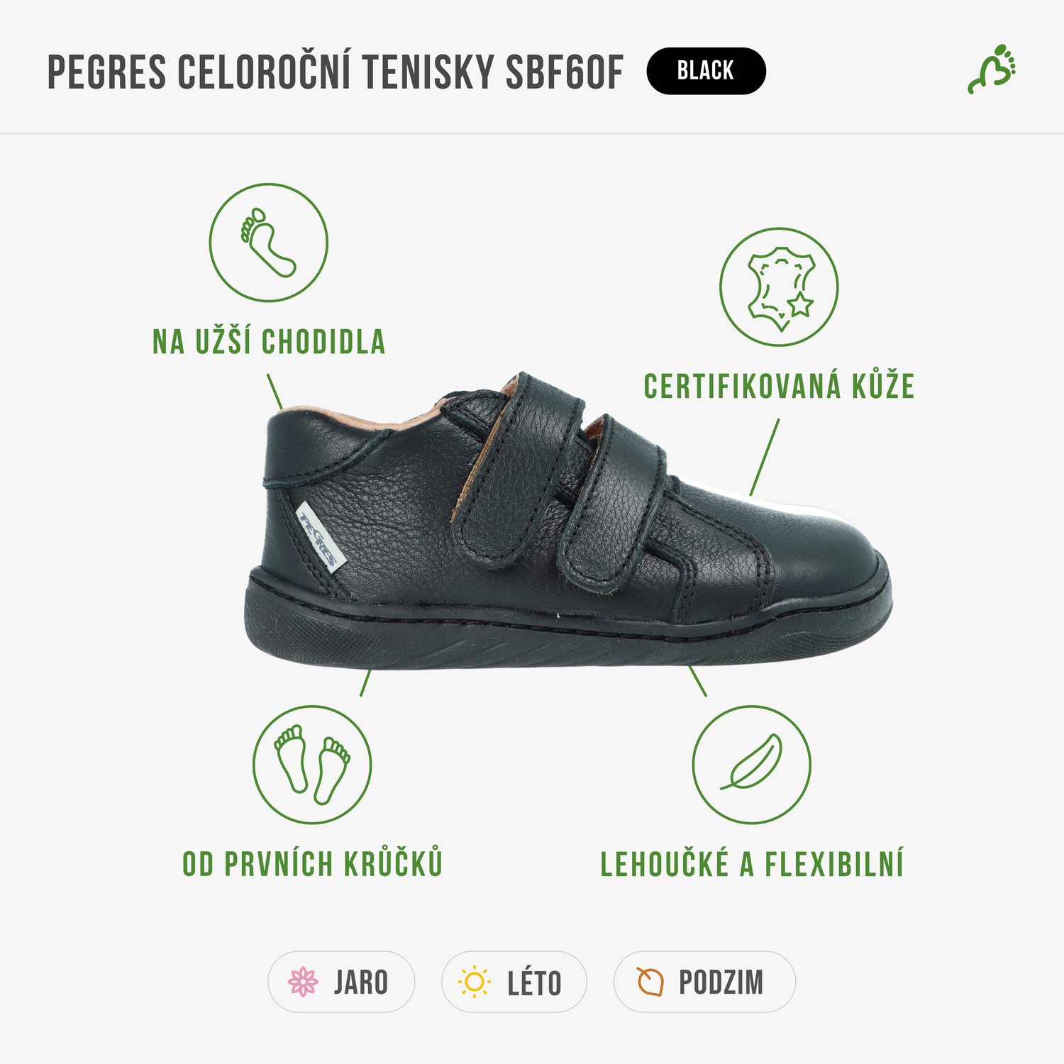 Celoroční módní barefoot tenisky od české značky Pegres jsou kvalitně zpracované a ručně vyráběné z certifikovaných italských kůží. Snadno se obouvají a pěkně drží na noze, přičemž díky svému střihu skvěle padnou i buclatým dětským nožkám s vyšším nártem.
