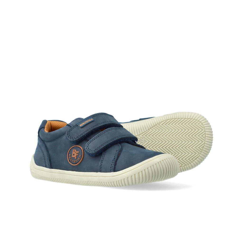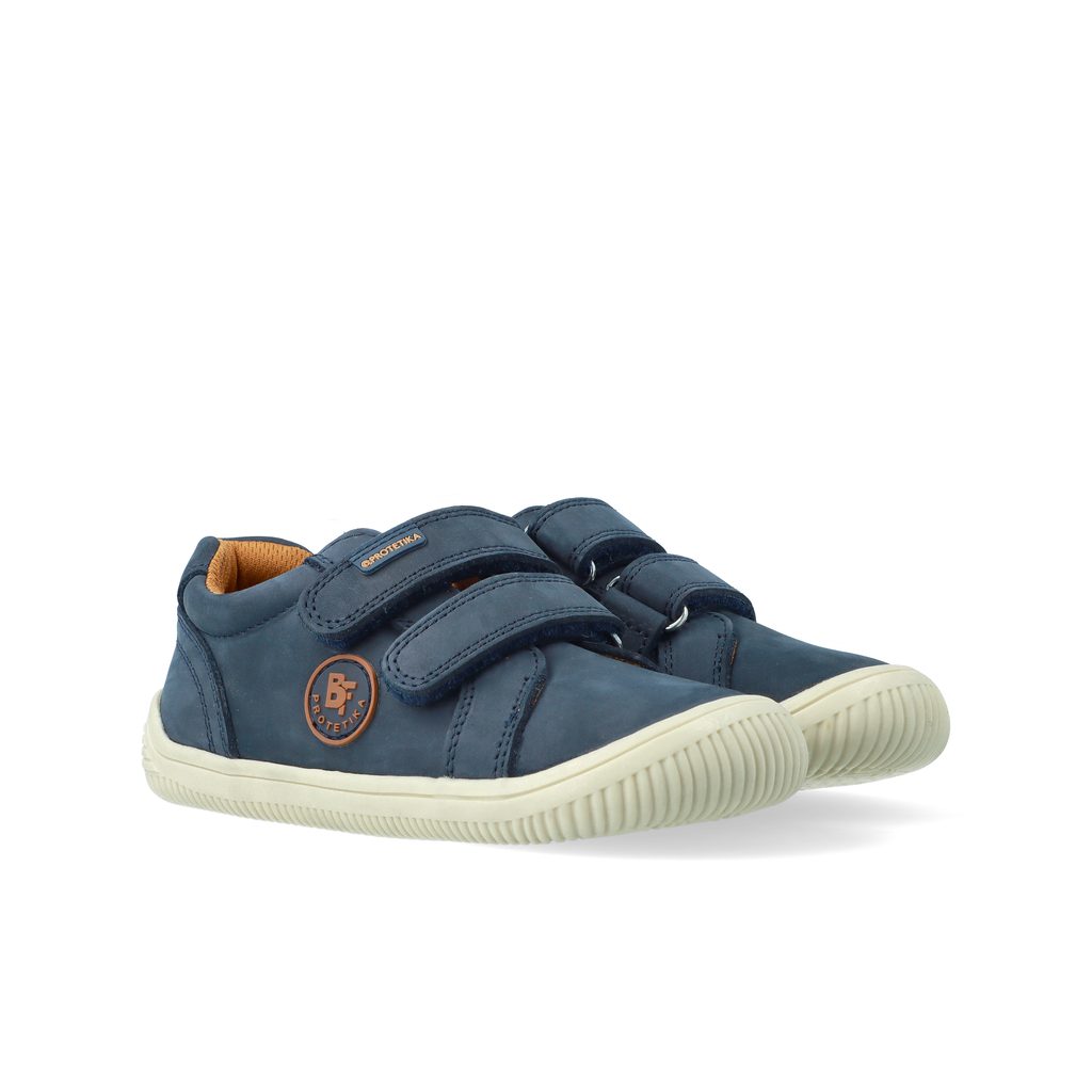 Dětské celoroční barefoot tenisky od slovenské značky Protetika z kvalitní nubukové kůže. Díky dvěma páskům na suchý zip se jednoduše obouvají a skvěle drží na noze. Vnitřek je textilní, s vyjímatelnou koženou stélkou. Podrážka je ohebná gumová a na špičce a patě zvýšená, čímž zajišťuje vyšší odolnost bot proti okopu. Vyrobené jsou s ohledem na dětskou anatomii tak, aby chodidlům nebránily v přirozeném pohybu a podporovaly jejich vývoj.
