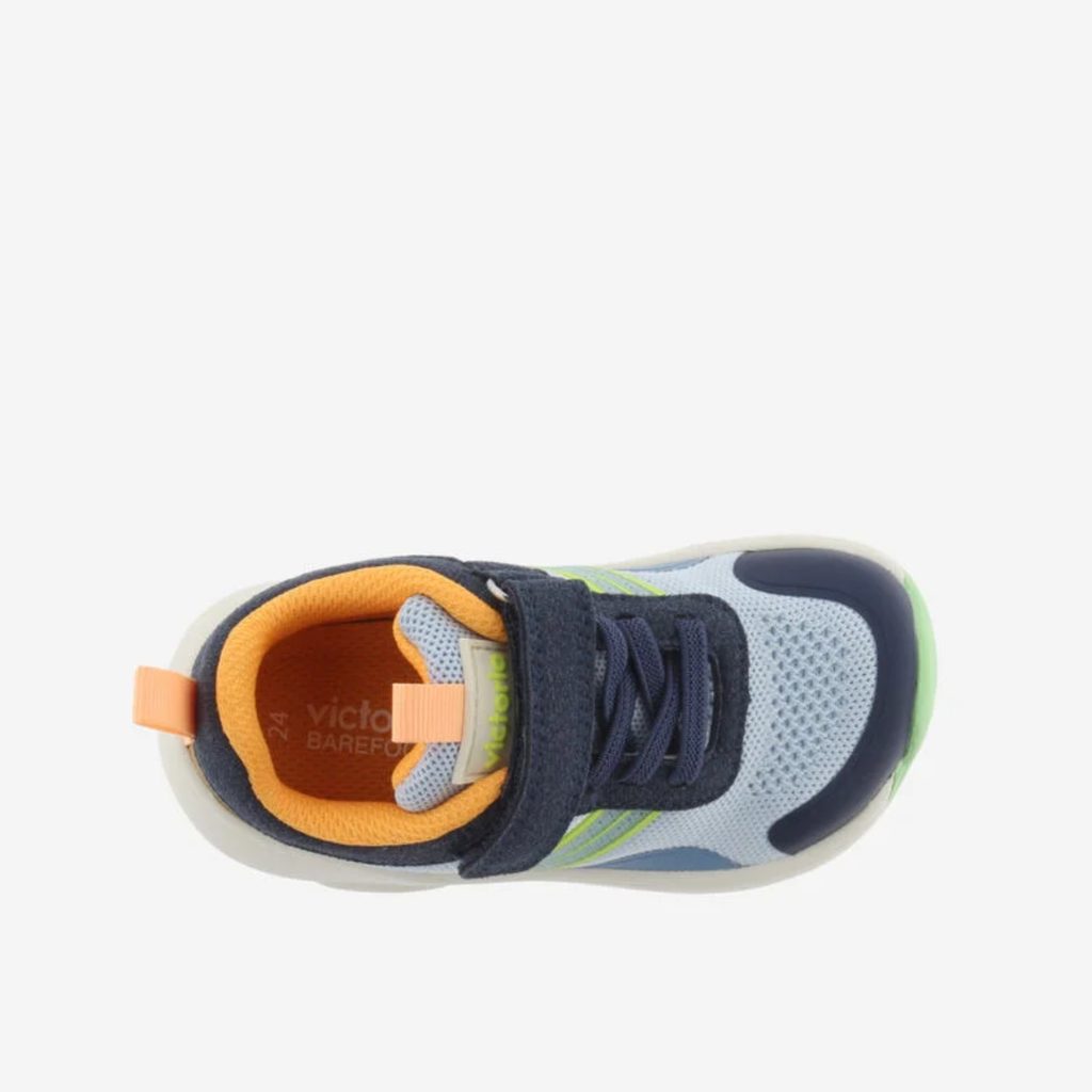 VICTORIA KAI jsou lehké sportovní barefoot tenisky pro děti vyrobené z prodyšného tricotového úpletu. Díky kombinaci elastických tkaniček a pásku na suchý zip se snadno nazouvají a dobře drží na noze – ideální pro aktivní děti do školky, školy i na hřiště.