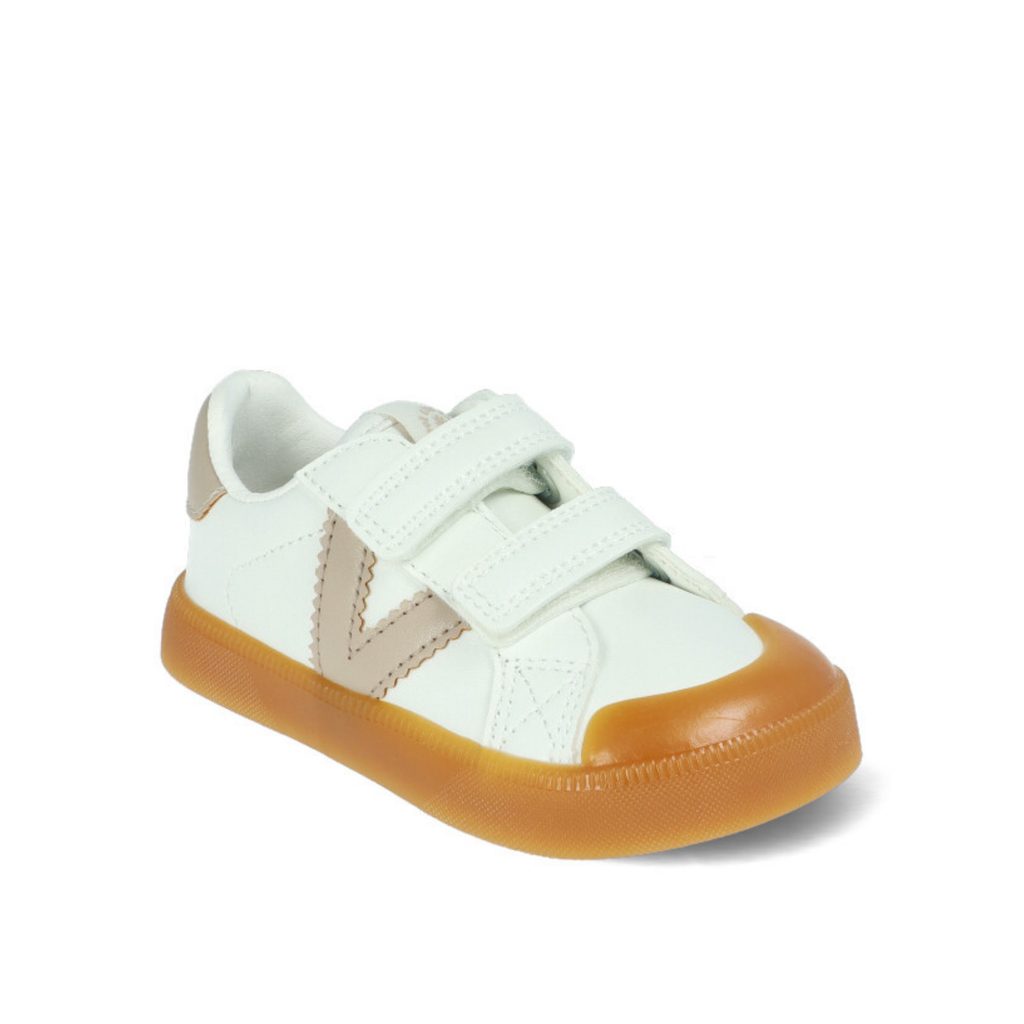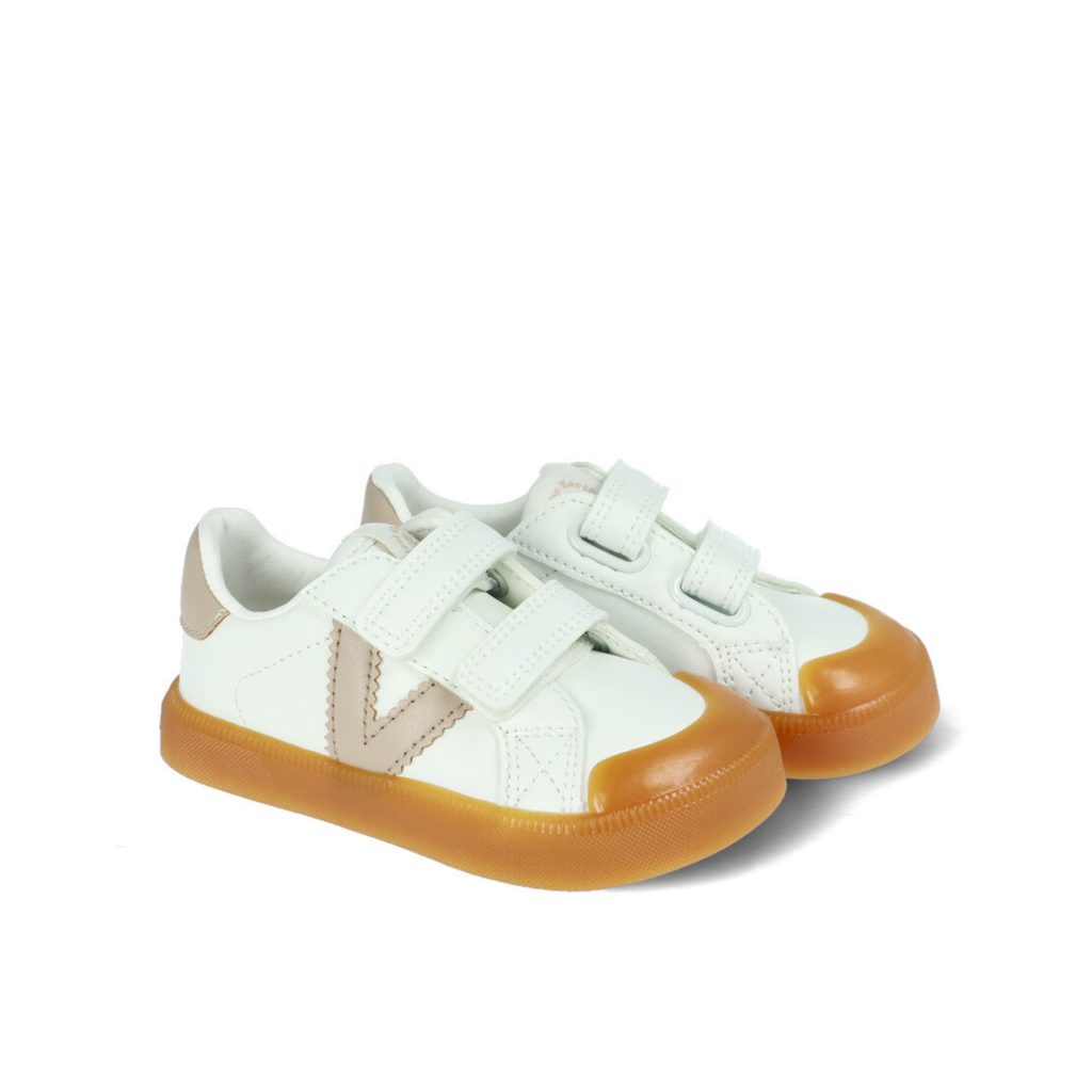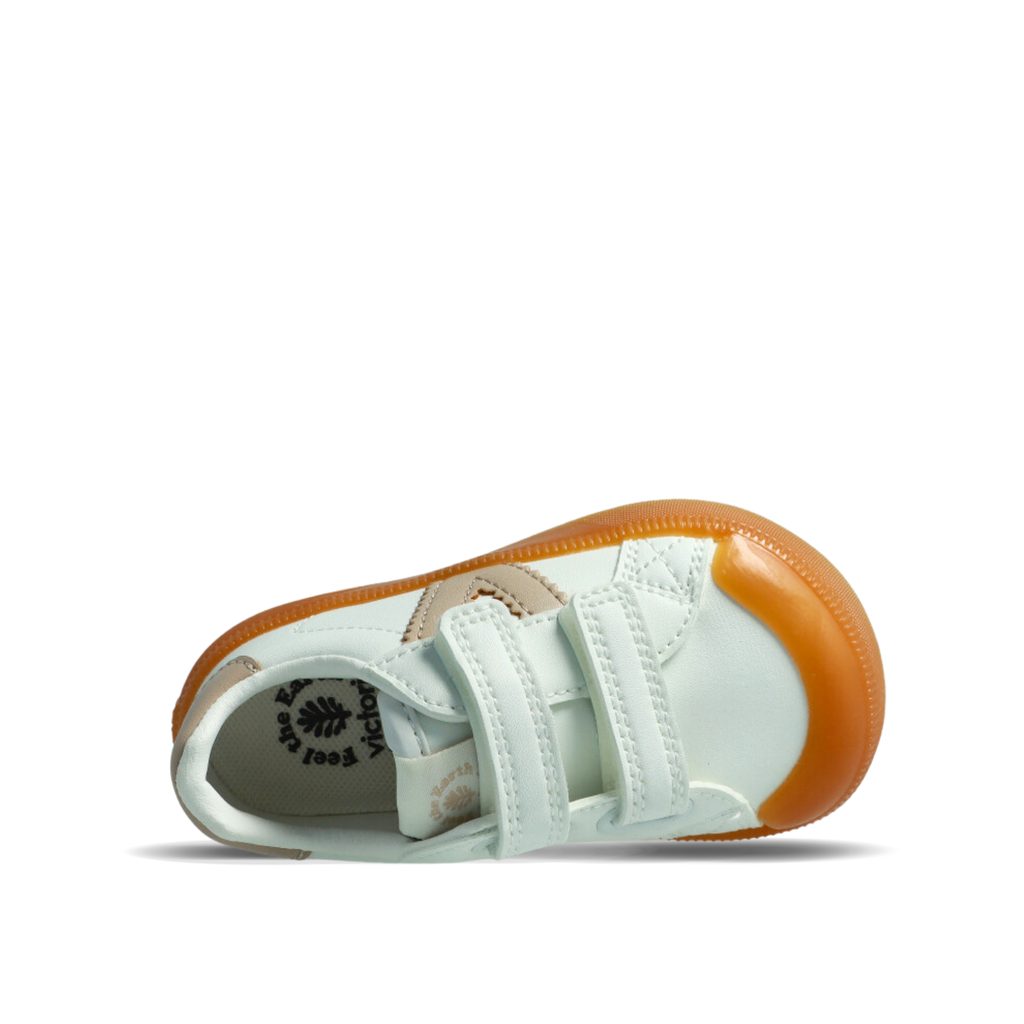VICTORIA OLIVER KIDS jsou dětské barefoot tenisky z bílé syntetické kůže s barevným logem „V“ na boku a kontrastním patním panelem. Nabízí široký anatomický střih, který podporuje přirozený vývoj dětského chodidla a poskytuje dostatek prostoru pro prsty.