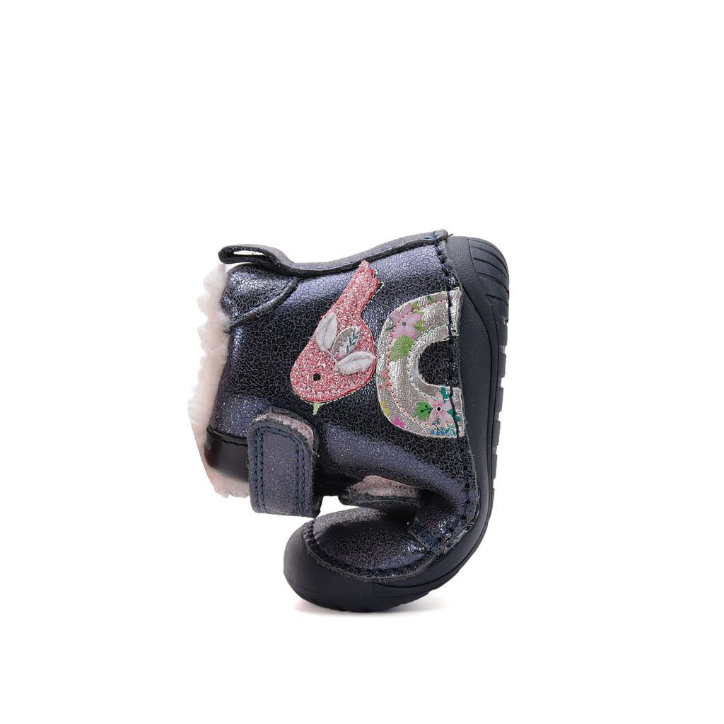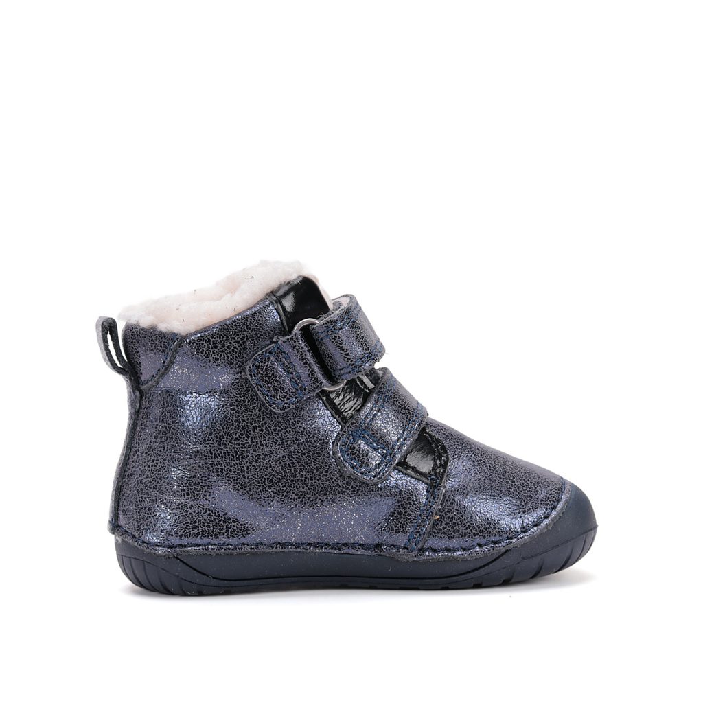 Svršek z kvalitní hladké kůže je nejen odolný, ale i příjemně poddajný. Boty mají měkkou, vyjímatelnou zateplenou stélku a lehkou protiskluzovou podrážku, která se skvěle přizpůsobí dětskému pohybu. Dva pásky na suchý zip usnadňují nazouvání i regulaci kolem nártu.