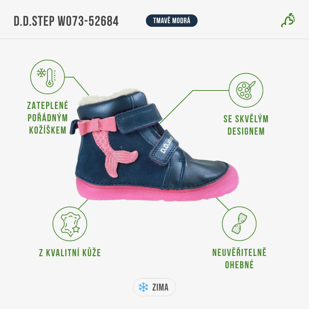 Oblíbené zimní barefoot boty D.D. Step jsou ideální volbou pro každodenní nošení během podzimu a zimy. Díky hřejivému kožíšku udrží dětské nohy v teple, zatímco flexibilní podrážka, prostorná špička a nulový drop podporují zdravý vývoj chodidla a přirozený styl chůze.