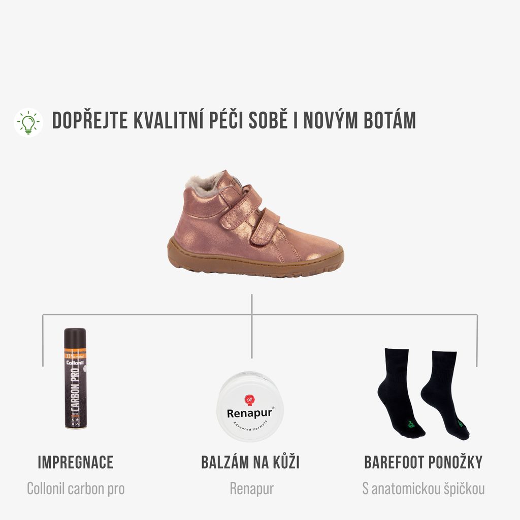 Barefoot boty simulují chůzi naboso. Správně zvolené a dobře padnoucí botičky umožňují zdravý vývoj dětské nohy. Zároveň chrání před špínou, nepřízní počasí nebo poraněním.