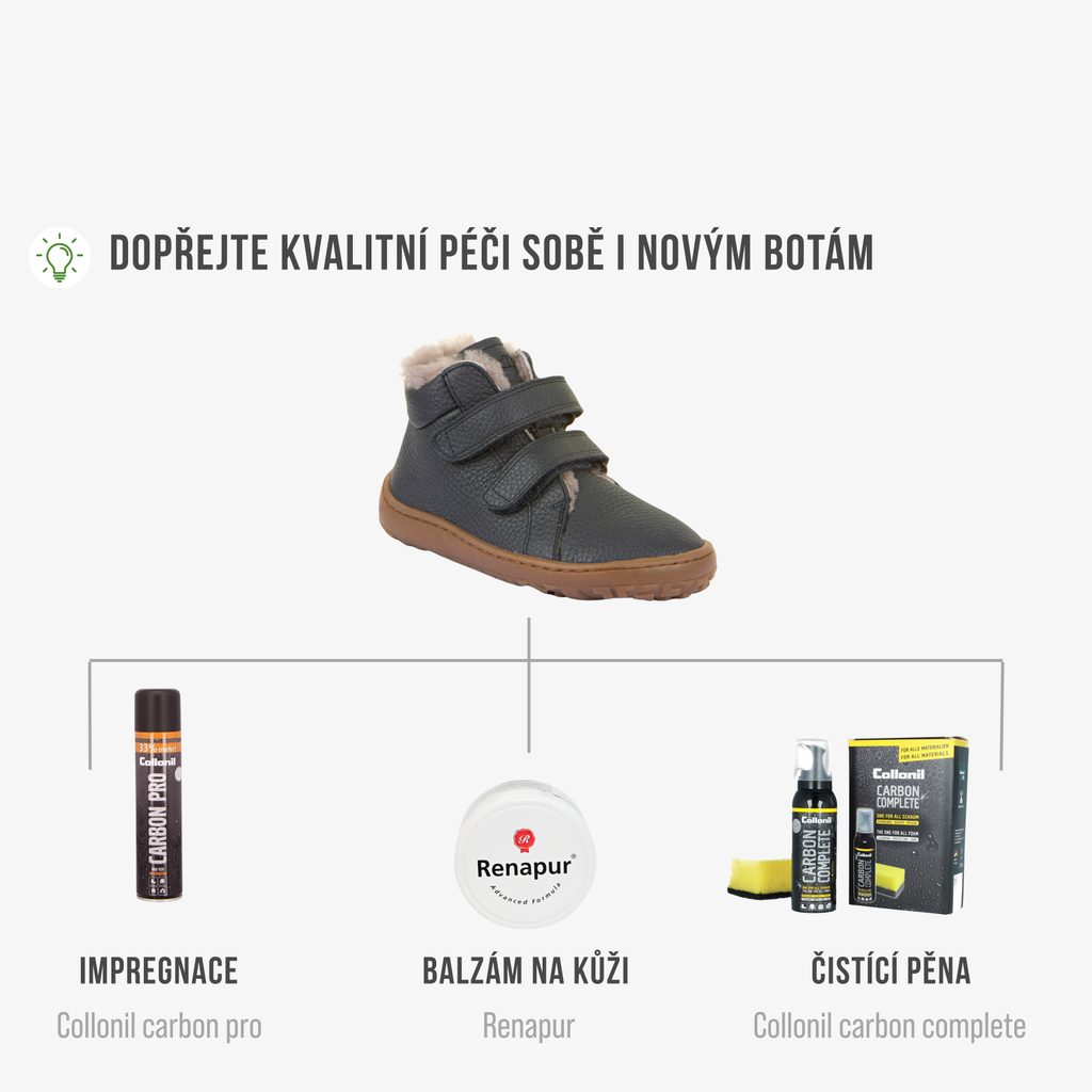 Dětské zimní barefoot boty z kvalitní hladké kůže s vodoodpudivou úpravou a zateplené hřejivou ovčí kožešinou, budou dětem skvělým parťákem při všech jejich radovánkách po celou zimu. Děti budou mít nožky v příjemném teple a suchu.