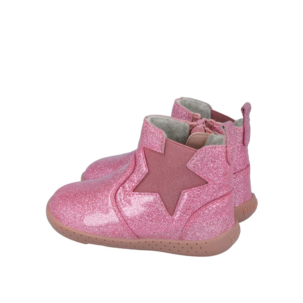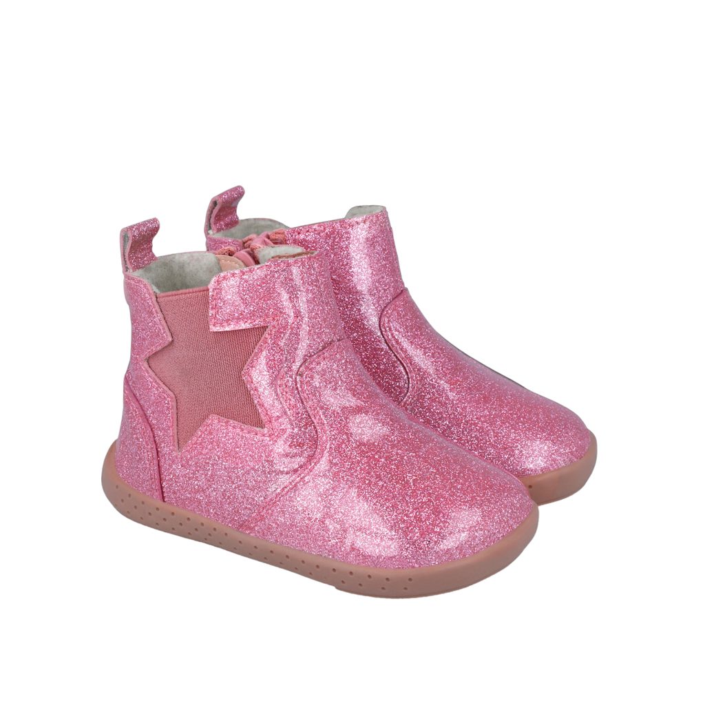 Stylové dětské barefoot boty značky Garvalín v lesklém růžovém provedení potěší každou malou parádnici. Tyto zateplené botičky jsou vyrobené ze syntetického materiálu s třpytivým efektem a mají flexibilní gumovou podrážku, která podporuje přirozený pohyb dětské nožky.