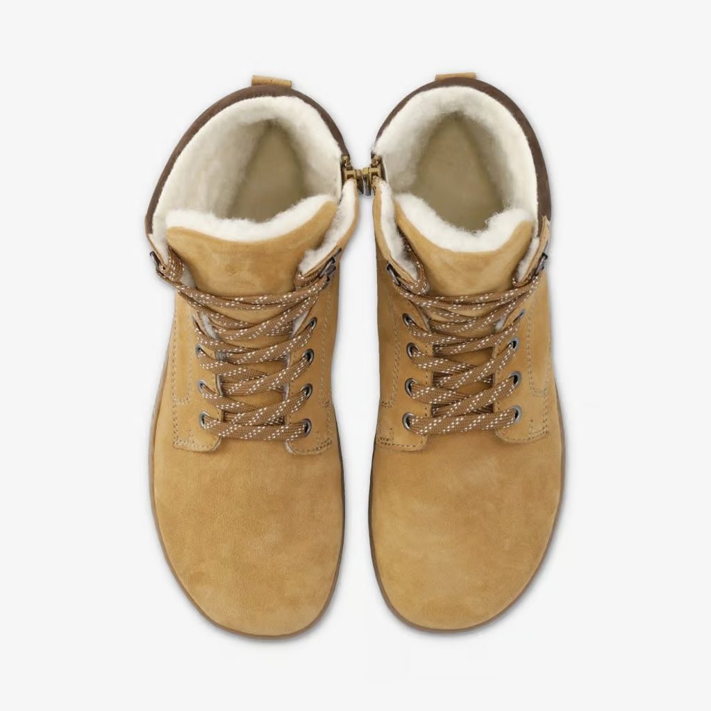 Kombinace nubukové a semišové kůže s hřejivou ovčí vlnou uvnitř.