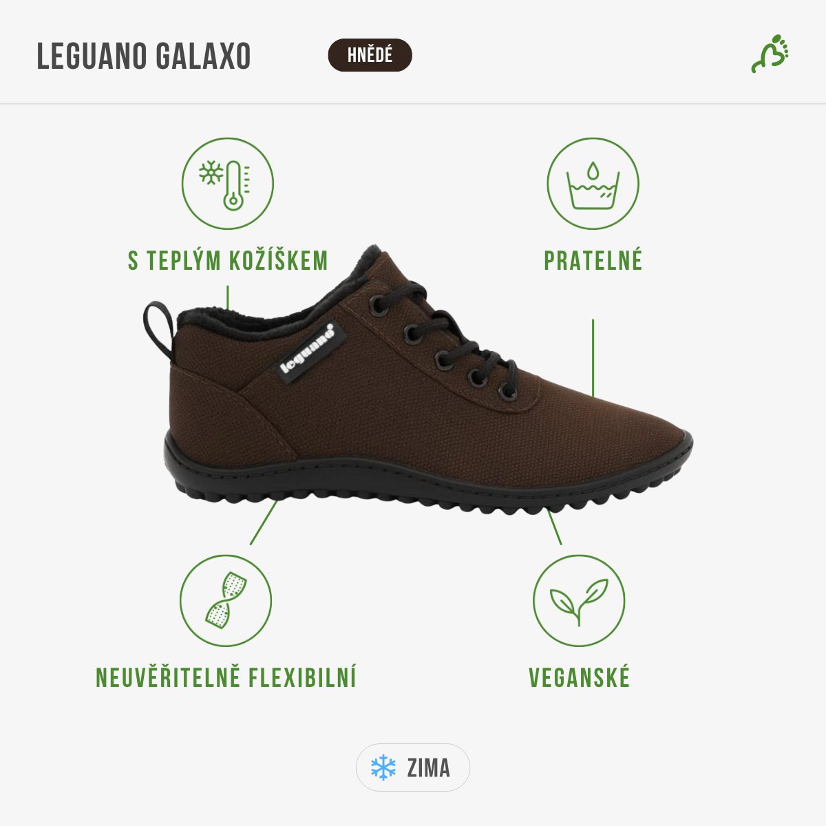 Leguano galaxo hnědé jsou ideální volbou pro všechny, kdo hledají zimní barefooty bez kompromisů. Kombinují elegantní vzhled, funkčnost a zdravý pohyb v jednom – to vše s důrazem na kvalitu, kterou od značky leguano právem očekáváte.