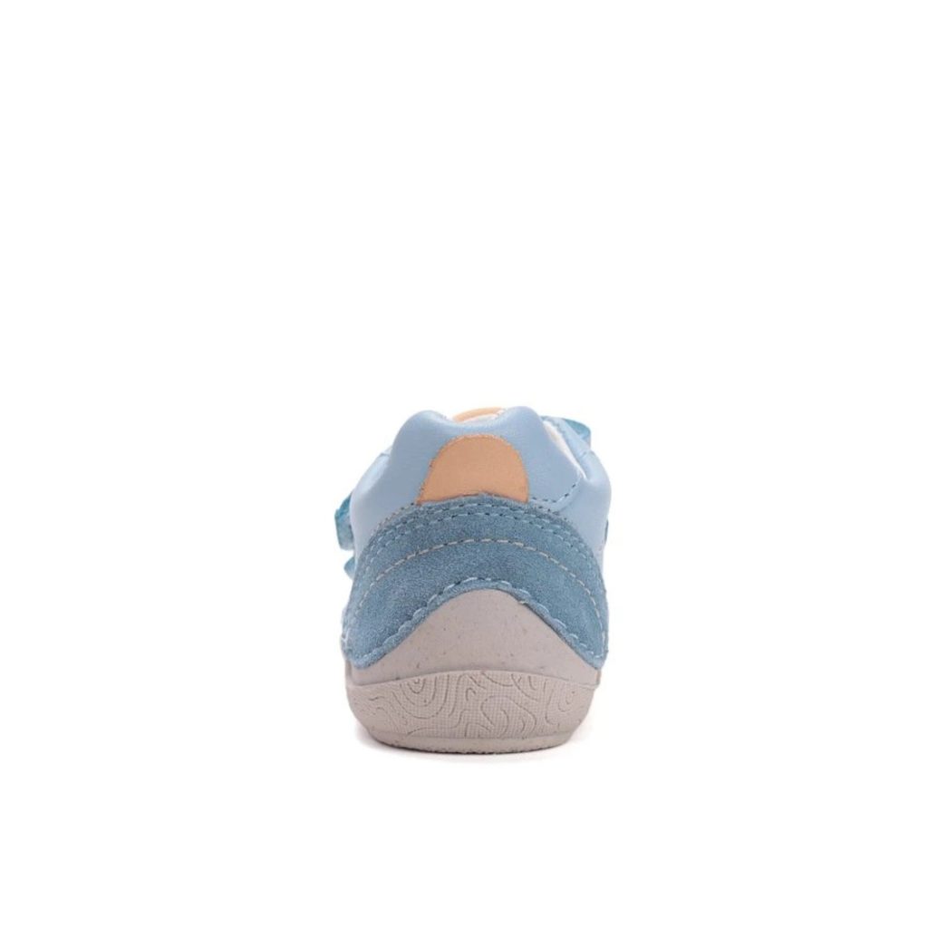 Měkká a velmi ohebná podrážka umožňuje přirozený pohyb chodidla a podporuje zdravý vývoj dětských nožek. Prostorná špička poskytuje dostatek místa pro prsty a respektuje i dominantní palec. Praktické zapínání na dva suché zipy usnadňuje obouvání a dobře přizpůsobí botu různým typům nártu.